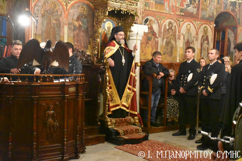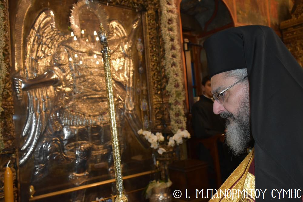 Από το απόγευμα του Σαββάτου, όταν στην Ιερά Μονή Πανορμίτου τελέστηκε ο πανηγυρικός Εσπερινός προεξάρχοντος του Μητροπολίτου Παραμυθίας κ. Σεραπίωνος, η Σύμη άρχισε να γεμίζει με κόσμο. Κληρικοί, μοναχοί, λαϊκοί, επίσημοι και απλοί προσκυνητές κατέφθαναν από τη Ρόδο, από τα γύρω νησιά, από την Αθήνα, ακόμα και από το εξωτερικό.