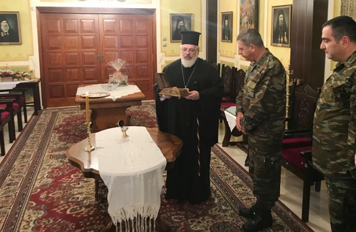 Ο Σεβασμιώτατος είχε την ευκαιρία να συγχαρεί τον Στρατηγό για την πρόσφατη προαγωγή του και για την ανάληψη των ευθυνοφόρων καθηκόντων του και να του ευχηθεί τα δέοντα.