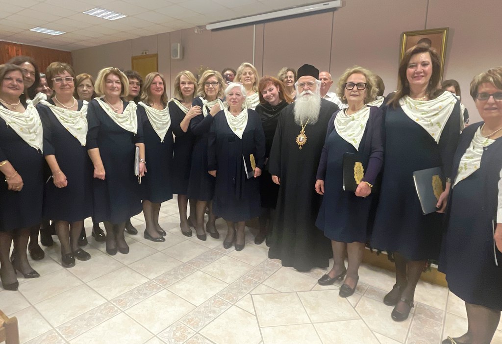 Στο τέλος της ομιλίας, η χορωδία της Ιεράς Μητροπόλεως απέδωσε χριστουγεννιάτικα τραγούδια, υπό τη διεύθυνση της κ. Μαριάννας Σαμαρτζή.