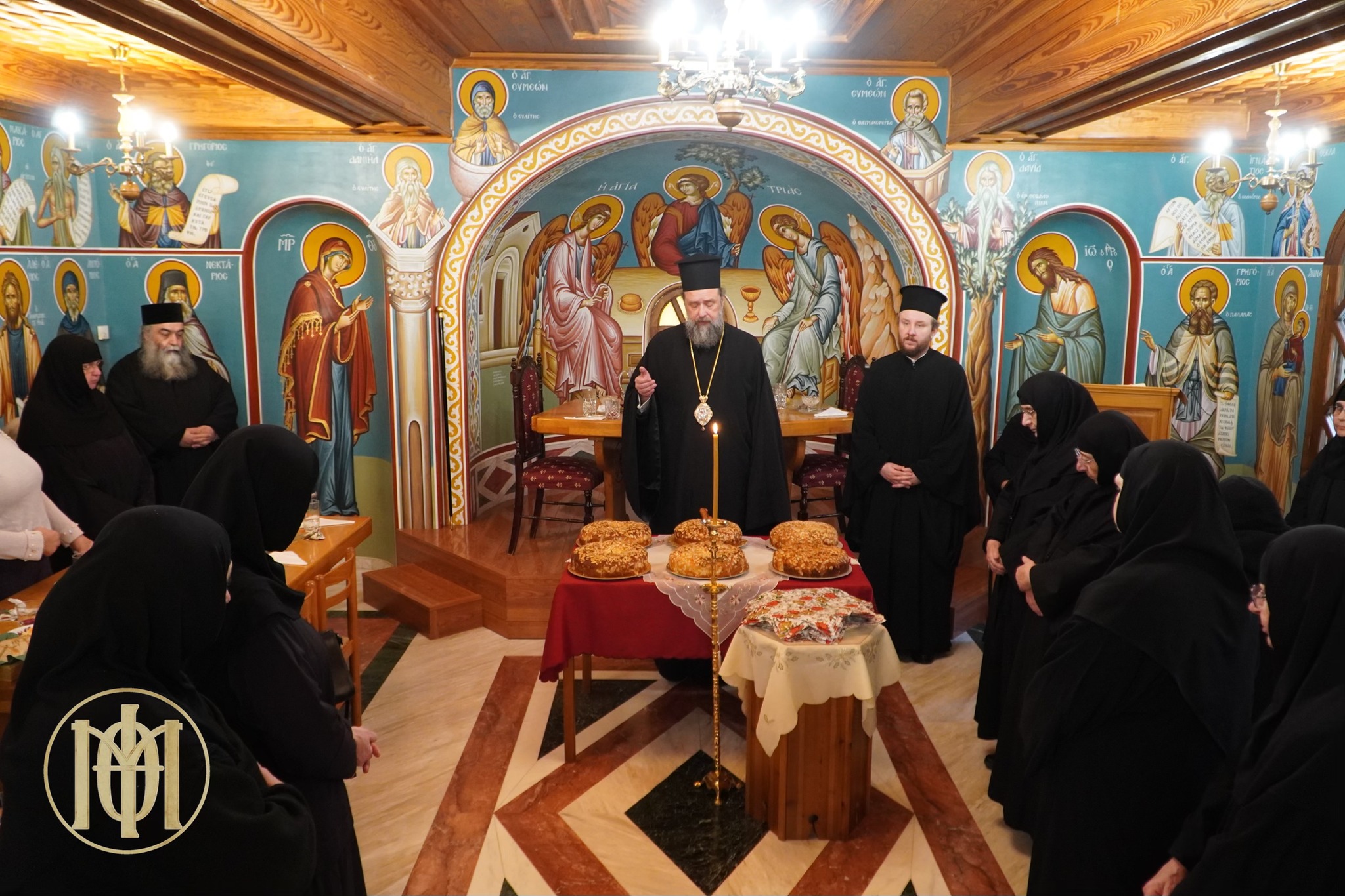 Μετά τη σύναξη ο Μητροπολίτης ευλόγησε και έκοψε την πρωτοχρονιάτικη βασιλόπιτα, την οποία εν συνεχεία διένειμε στις μοναχές.