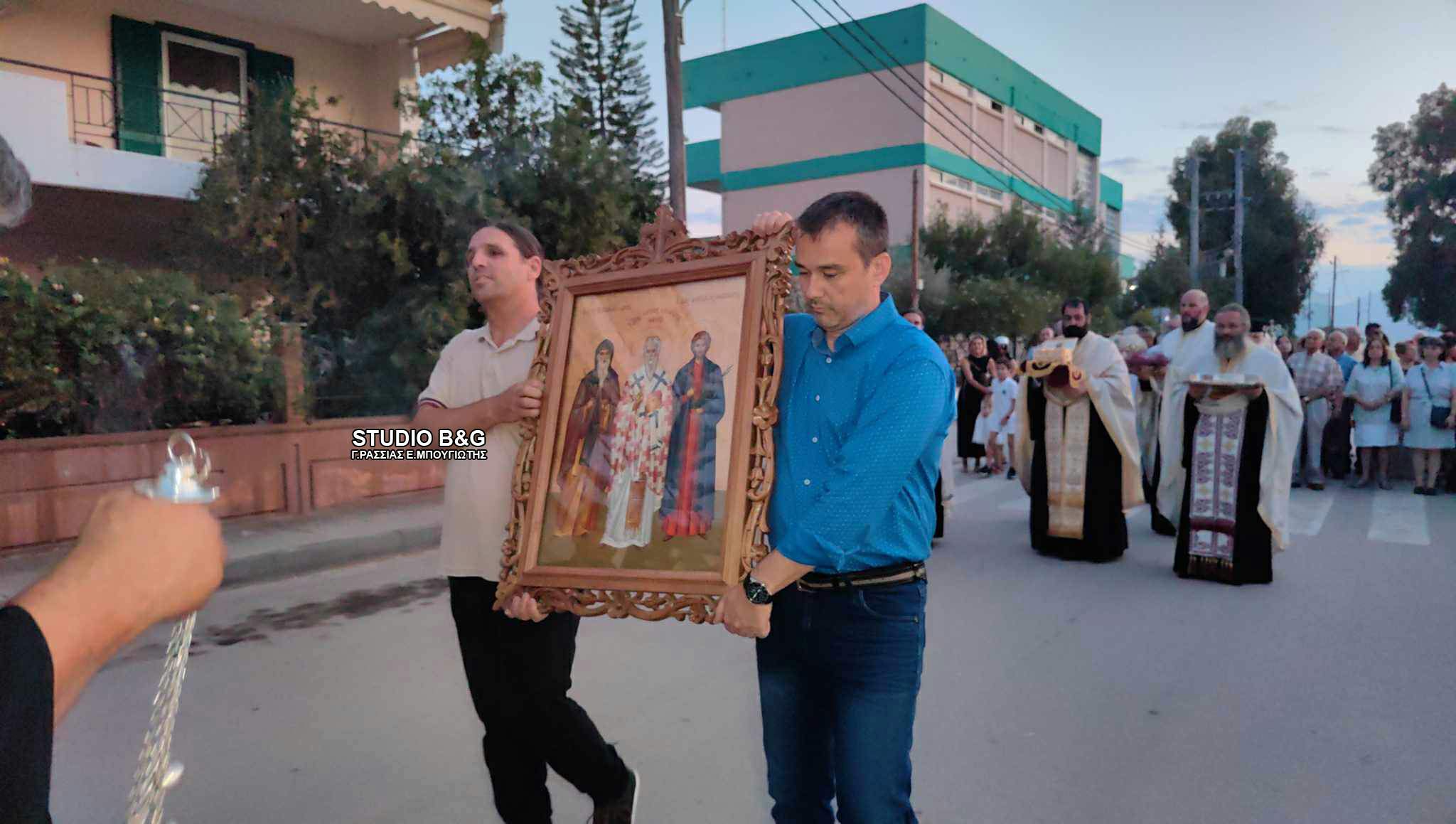 Στον ιερό ναό μεταφέρθηκαν με λιτανεία τα ιερά λείψανα των Αγίων Πέτρου Επισκόπου Άργους, Θεοδοσίου τον Νέον και Ιαματικού, Νήφωνος Πατριάρχου Κωνσταντινουπόλεως και Λεωνίδη εν Επιδαύρου.