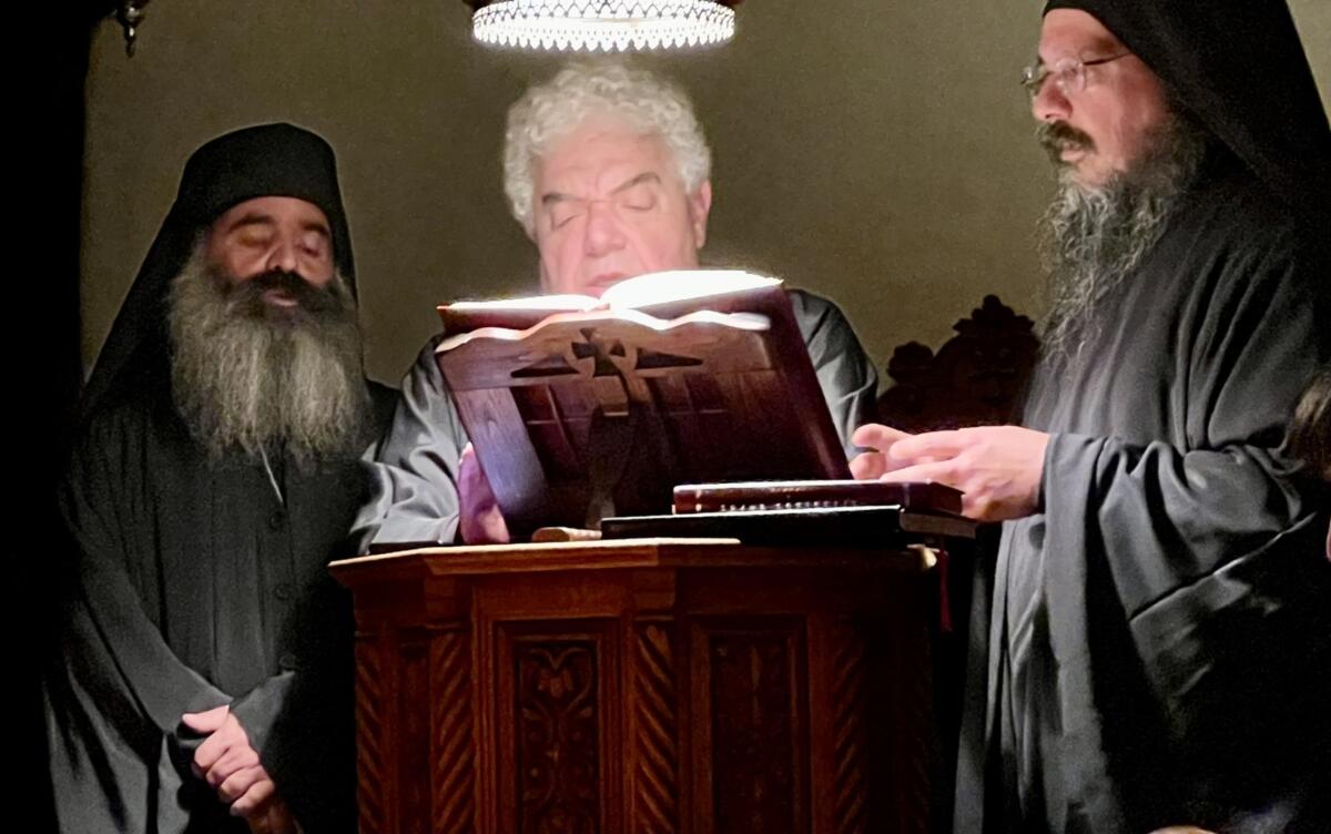 Την 7ην απογευματινή ώρα ξεκίνησε η πανηγυρική και πολύωρη ιερά Αγρυπνία. Στην ιερἀ αγρυπνία ο Σεβασμιώτατος χοροστάτησε ενώ ετέλεσε την ακολουθία της λιτής και της αρτοκλασίας κατά το μοναστηριακό τυπικό. Τέλος ευχήθηκε στον άγοντα τα ονομαστήριά του καθηγούμενο της Ιεράς Μονής αρχιμανδρίτη Δαμασκηνό, για τον οποίο ευχήθηκε να συνεχίσει να αποτελεί “πνευματικό μαγνήτη”, ο οποίος θα ελκύει ψυχές ανθρώπων ποθούντων τον μοναχικό βίο αλλά και που ζητούν καθοδήγηση για τον εν κόσμω πνευματικό αγώνα.