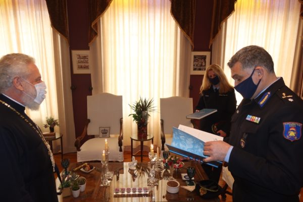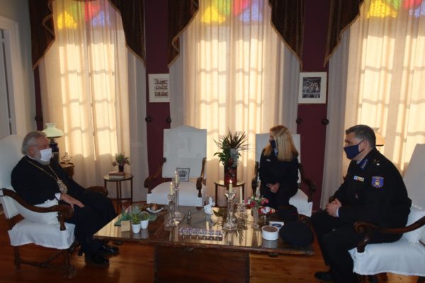 I.M. ΣΥΡΟΥ: Συνοδευόμενος από την Πύραρχο κα Αναστασία Μαγκλάρα, Διοικήτρια των Πυροσβεστικών Υπηρεσιών Ν. Κυκλάδων, ο νέος Περιφερειακός Διευθυντής των Υπηρεσιών Ν. Αιγαίου Αρχιπύραρχος κ. Παν. Κουτρίδης επεσκέφθη σήμερα στο Επισκοπείο Ερμουπόλεως εθιμοτυπικώς τον Σεβασμιώτατο Μητροπολίτη Σύρου κ. Δωρόθεο Β΄, με τον οποίο είχε μία εποικοδομητική συζήτηση και προς τον οποίο ανέφερε τα στεγαστικά προβλήματα που αντιμετωπίζουν οι Πυροσβεστικές Υπηρεσίες στη Σύρο, του εξέφρασε την αγάπη και το σεβασμό του προς την Εκκλησία και τον διαβεβαίωσε για την συμπράστασή του στο έργο της.