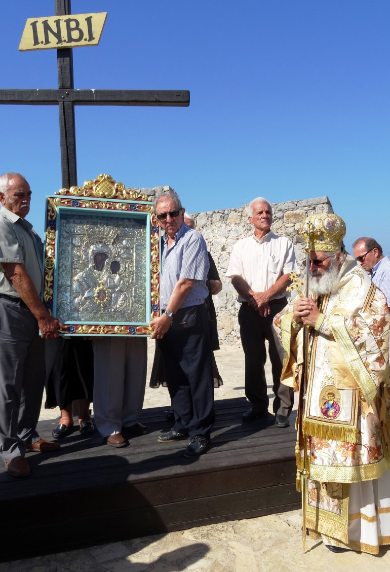 Μετά το πέρας της Θείας Λειτουργίας ετελέσθη υπό του Μητροπολίτου και του Ιερού Κλήρου, η κατ’ έθος λιτάνευσις της θαυματουργού Ιεράς Εικόνος της Παναγίας μας στα «πεντένια» του Κάστρου, όπου όλοι οι προσκυνητές ασπάσθηκαν την Εικόνα και προσευχήθηκαν.