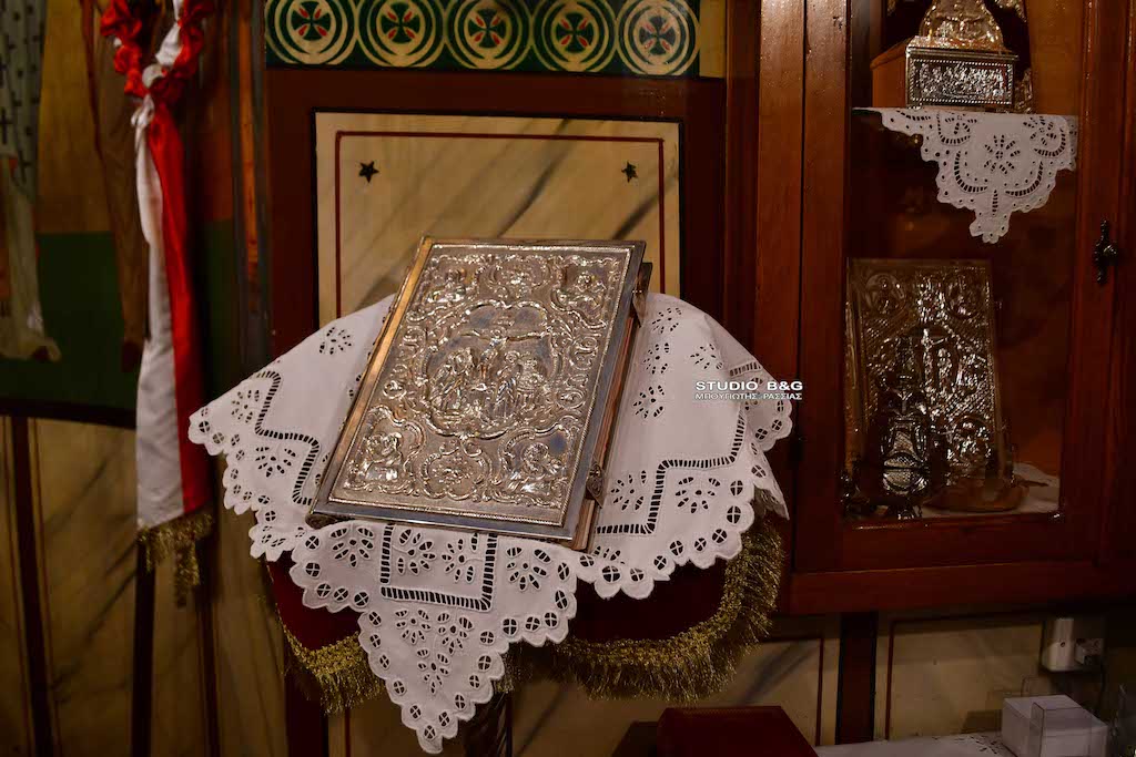 Μετά το τέλος του εσπερινού ακολούθησε η λιτάνευση της Ιερής εικόνας παιανιζούσης της Δημοτικής φιλαρμονικής Ναυπλίου παρουσία του Δημάρχου Ναυπλιέων Δημήτρη Κωστούρου.