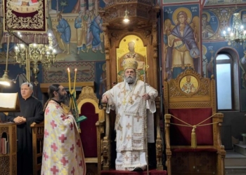 (λόγω κορωνοϊού εντός του Ιερού Ναού) του σεπτού Σκηνώματος του Αγίου της Συγχωρητικότητας. Ακολούθησε κατανυκτική δέηση ενώπιόν Του και εναπόθεσή Του στην Λάρνακα της μόνιμης κοιμήσεώς Του.