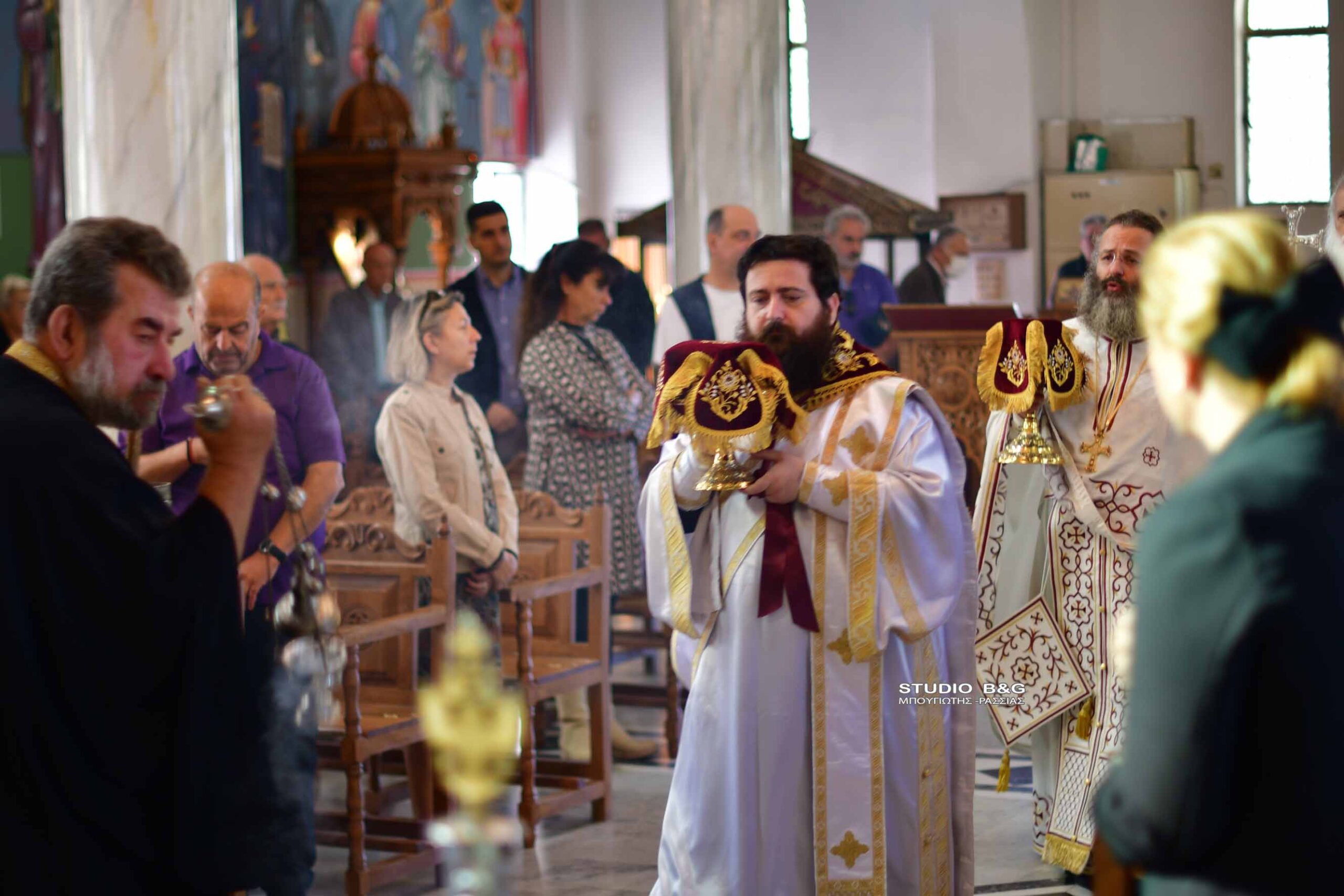 Κατά την θεία λειτουργία έψαλλε ο πρωτοψάλτης και αντιδήμαρχος Ναυπλίου Κωνσταντίνος Ρούτουλας . Το θεία κήρυγμα έκανε ο γενικός αρχιερατικός της Μητροπόλεως Αργολίδας πρωτοπρεσβύτερος π. Πέτρος Αθανασόπουλος.