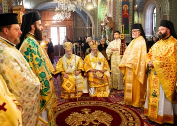 Εν συνεχεία ο Μητροπολίτης κ. Χρυσόστομος Χοροστάτησε κατά τη διάρκεια του Εσπερινού συμπαραστατούμενος από ιερείς της πόλεως και των χωρίων των Τρικάλων.