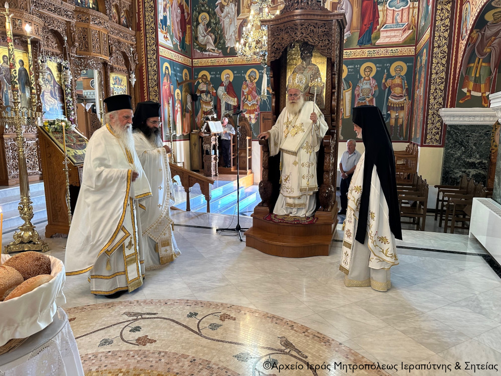 Στην Αρχιερατική θεία Λειτουργία έλαβαν μέρος ο Προωτοσύγκελλος της Ιεράς Μητροπόλεως και Ηγούμενος της Μονής Τοπλού Αρχιμ. Αμβρόσιος Σκαρβέλης, ο Πανοσιολ. Αρχιμ. του Οικουμενικού Θρόνου Ευδόκιμος Καρακουλάκης, ο Προϊστάμενος και Εφημέριος του Ιερού Ναού Ευαγγελισμού της Θεοτόκου Σητείας πρωτ. Φιλοκτήμων Αυγουστινάκης και ο Διάκονος Θεμιστοκλής Μπεϊνάς, ενώ στο μνημόσυνο μετείχε και ο συνταξ. πρωτ. Εμμανουήλ Αυγουστινάκης, Εφημέριος του Ιερού Προσκυνηματικού Ναού Αγίων Κωνσταντίνου και Ελένης Σητείας.