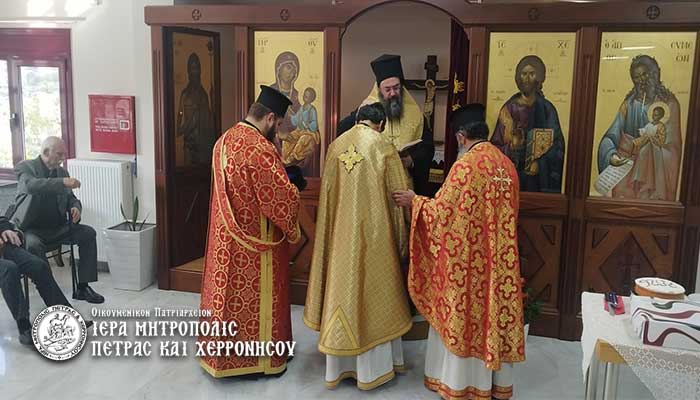 της ΜΦΗ “Η Μεγάλη Παναγία”. Μίλησε προς τους εκκλησιασθέντες τροφίμους για τη ζωή του Δικαίου Συμεών του Θεοδόχου, τονίζοντας την καρτερία του και την ελπίδα που είχε να δει τον Υιό του Θεού σαρκωμένο, πριν φύγει από αυτή τη ζωή.