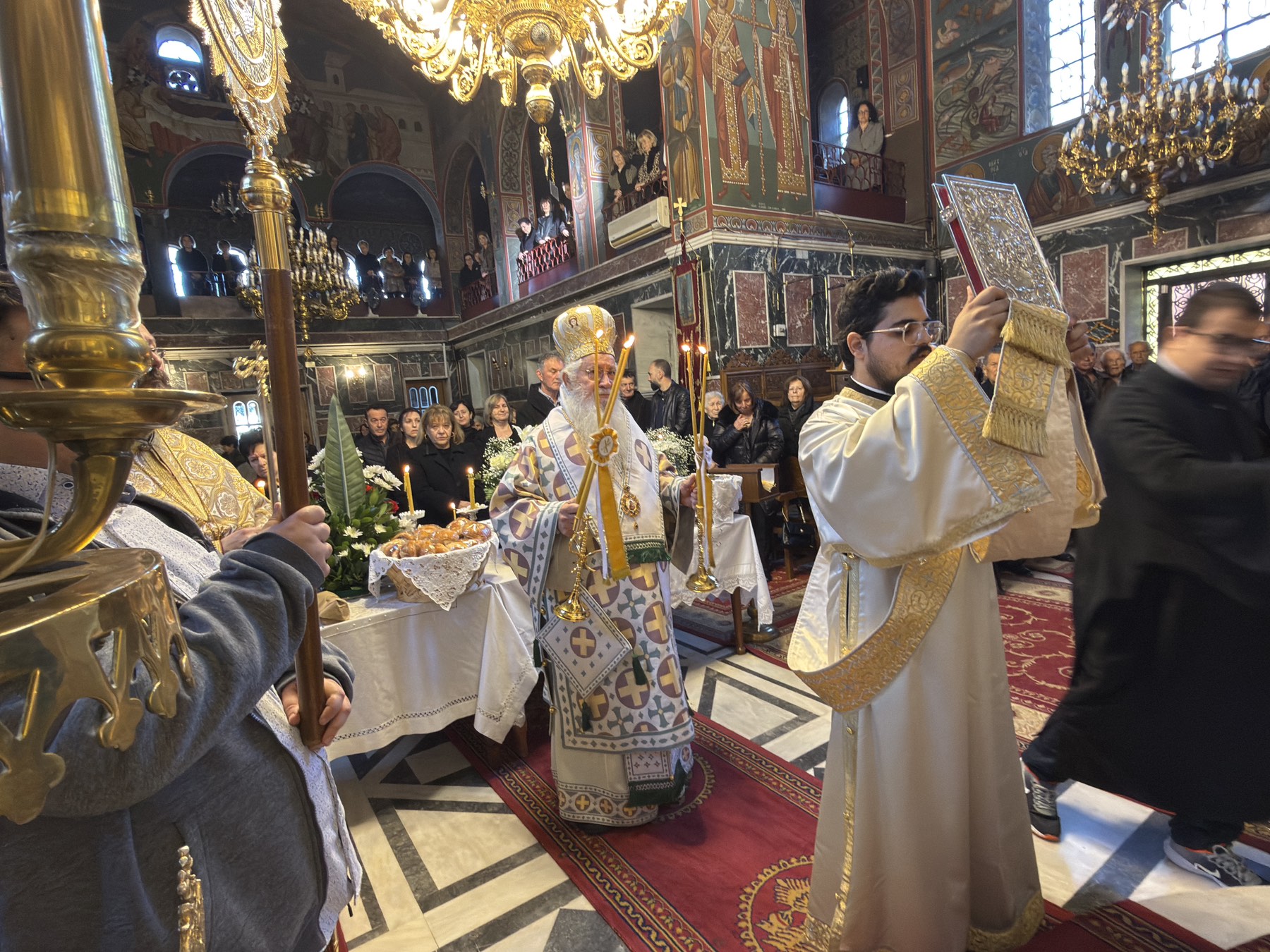 Στο τέλος της Θείας Λειτουργίας ο Μητροπολίτης τέλεσε τα ιερά μνημόσυνα τριών ενοριτών.