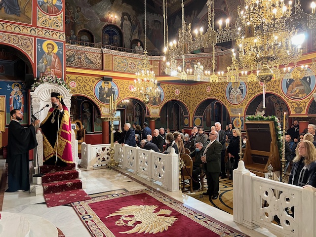Το βράδυ τελέστηκε Ιερά Αγρυπνία ιερουργούντος του πρωτοσυγκέλλου της Ιεράς Μητροπόλεως Περιστερίου, Αρχιμανδρίτη Άγγελου Ανθόπουλου.