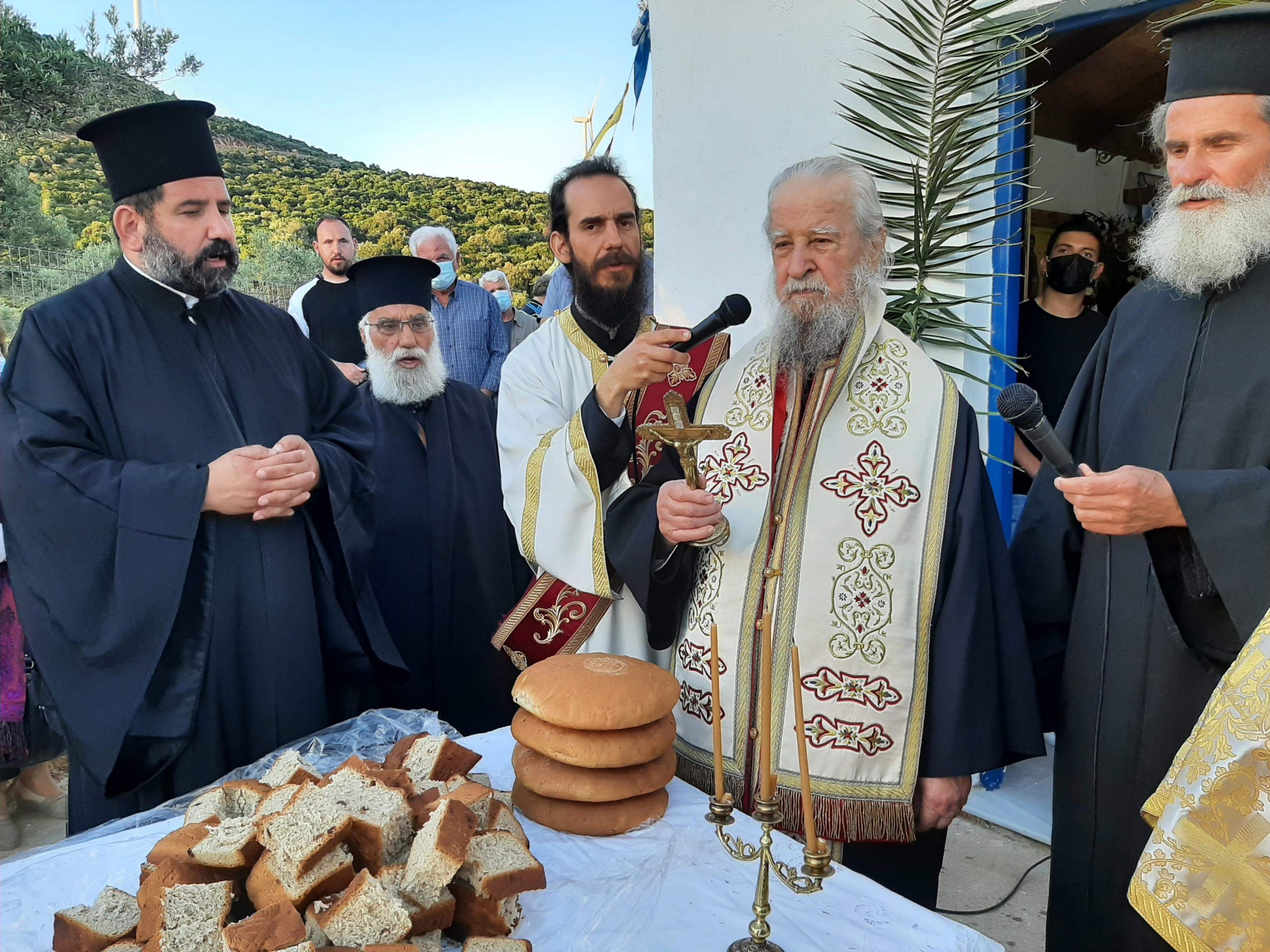 Πριν την απόλυση του εσπερινού ο Σεβασμιώτατος κ. Σεραφείμ ευλόγησε τους προσφερθέντες άρτους στην συνέχεια ομίλησε και ευχήθηκε καταλήλως προς τους πιστούς που συμμετείχαν στην ιερά ακολουθία ιστάμενοι με τις προβλεπόμενες υγειονομικές διατάξεις μεταξύ εκ του οποίου του Προέδρου της Τοπικής Κοινότητος Κοσκίνων κ. Σταματίου Μπουραντά.