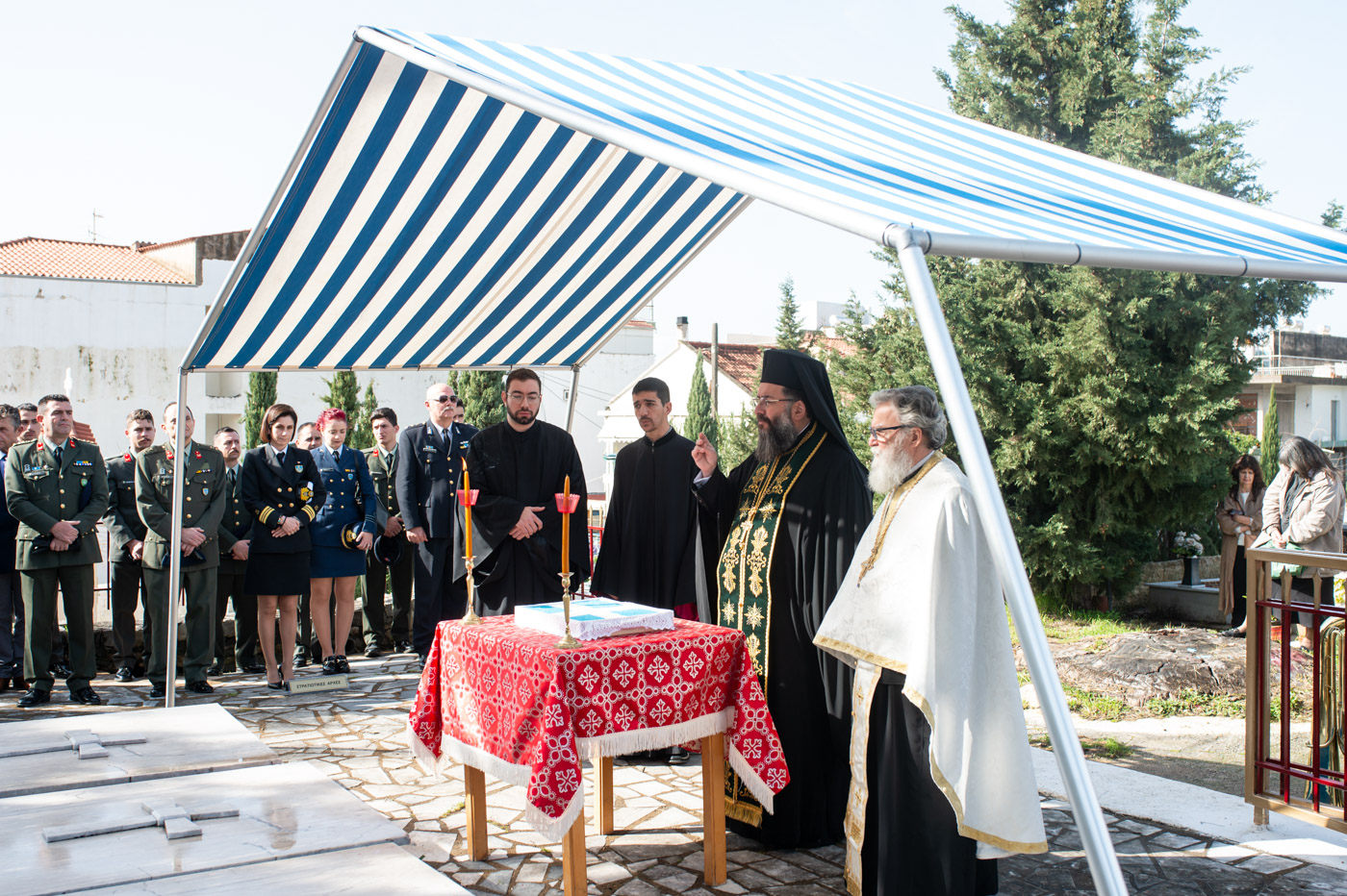 Των Ιερών Ακολουθιών του Μνημοσύνου και εν συνεχεία του Τρισαγίου επί του Μνημείου Πεσόντων, προέστη ο Πρωτοσύγκελλος της Ιεράς Μητροπόλεως Μεσσηνίας Αρχιμ. Φίλιππος Χαμαργιάς, εκπροσωπώντας τον Μητροπολίτη Μεσσηνίας κ. Χρυσόστομο, ενώ παρέστησαν ο Δήμαρχος Καλαμάτας κ. Αθ. Βασιλόπουλος, οι Αντιπεριφερειάρχες κ. Στάθης Αναστασόπουλος και κ. Μαρία Οικονομάκου, Αντιδήμαρχοι και μέλη του Δημ. Συμβουλίου Καλαμάτας, ο Διοικητής του 9ου Σ.Π. Συνταγματάρχης κ. Γεώργιος Χαρίτος, πλήθος Αξιωματικών και Οπλιτών του 9ου Σ.Π. και εκπρόσωποι των Σωμάτων Ασφαλείας και άλλων φορέων. Τις δέουσες Τιμές απέδωσαν Άγημα του Στρατού Ξηράς και η Δημοτική Φιλαρμονική Καλαμάτας.