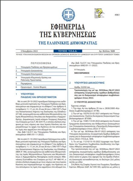 Εκδόθηκε στις 3 Νοεμβρίου 2022 το ΦΕΚ με την Αναγνώριση των δύο νέων Μητροπολιτών Αιτωλίας & Ακαρνανίας και Γόρτυνος & Μεγαλοπόλεως.
