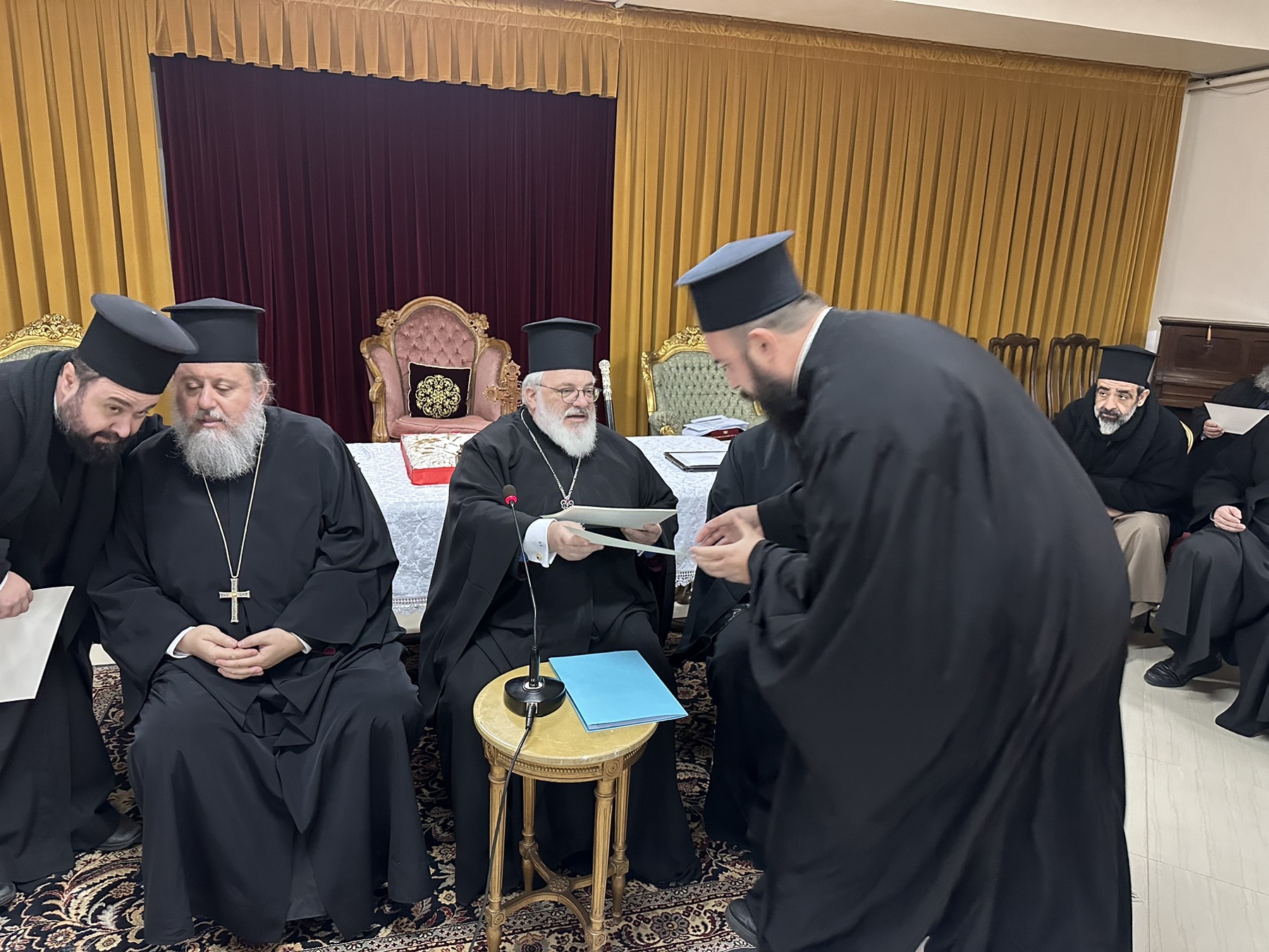 Προηγήθηκε η κοπή της Βασιλόπιτας και οι ευχές και οι νουθεσίες του Σεβασμιωτάτου προς τους ιερείς και τους διακόνους της επαρχίας του επί τω Νέω Έτει, στους οποίους και απένειμε τις πιστοποιήσεις για τα προγράμματα του Ι.Π.Ε τα οποία κατά καιρούς είχαν παρακολουθήσει.