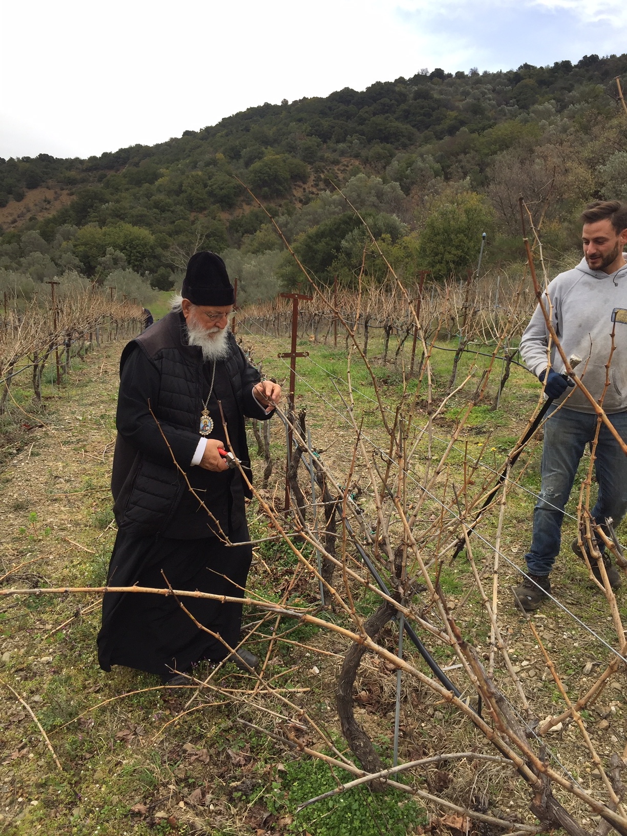Στο πλαίσιο αυτό προ ημερών ο Σεβασμιώτατος με συνεργάτες του εκτέλεσε εργασίες κλαδέματος στο αμπέλι της Ιεράς Μονής Τιμίου Προδρόμου στην Περδικόβρυση Κυνουρίας.