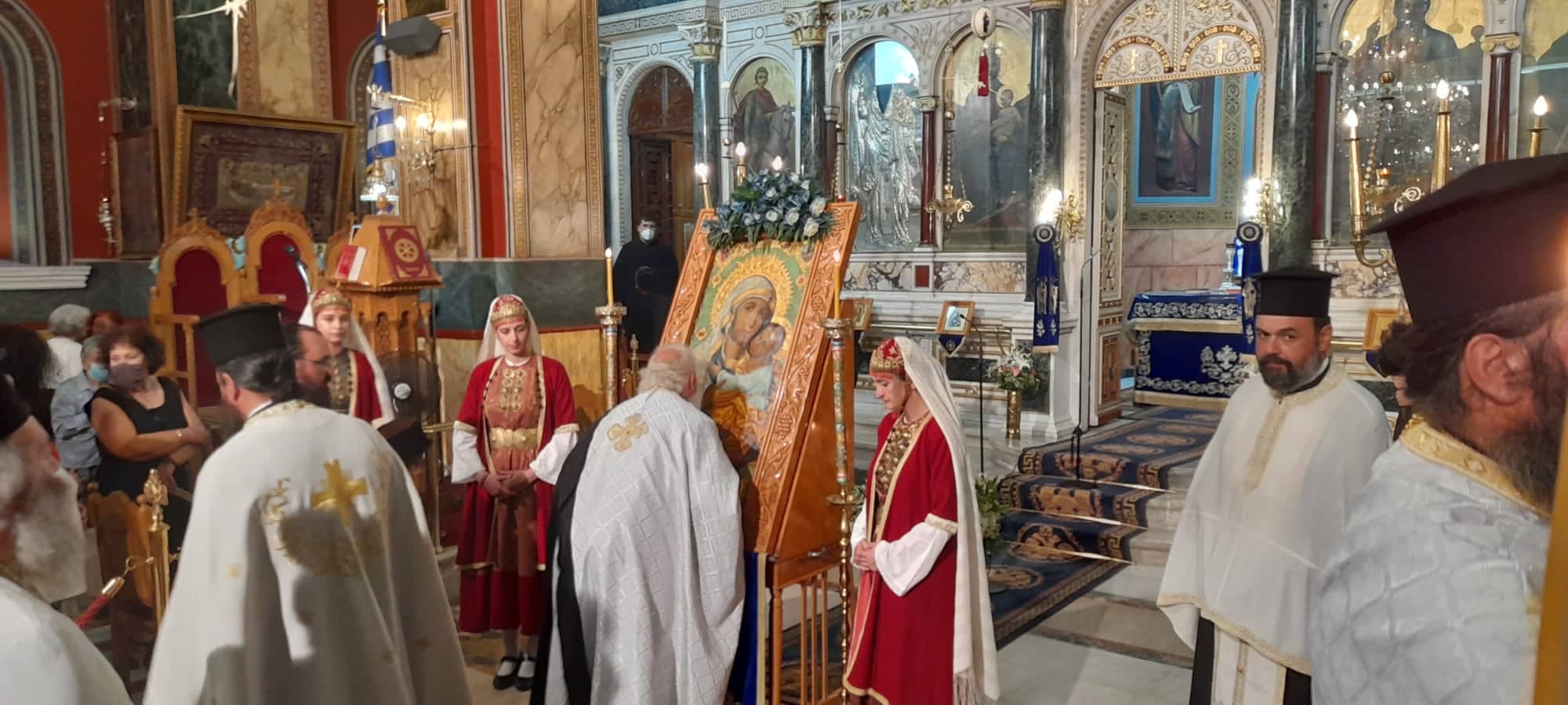 Για μία ακόμα χρονιά την αγία Εικόνα της «Παναγίας της Τριπολιτσάς» λιτάνευσε Κλήρος και Λαός μετ’ ευλαβείας το εσπέρας της Δευτέρας 1ης Αυγούστου 2022 πέριξ της αυλής του Ναού.