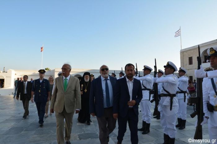 Την Κυβέρνηση εκπροσώπησε ο Υπουργός Ναυτιλίας και Νησιωτικής Πολιτικής κ. Παν. Κουρουμπλής, ενώ συμμετείχαν ο Πρόεδρος της Ένωσης Κεντρώων κ. Β. Λεβέντης, ο Αντιπρόεδρος της Βουλής κ. Μ. Γεωργιάδης, ο Χωρικός Αντιπεριφερειάρχης Κυκλάδων κ. Γ. Λεονταρίτης, ο Έπαρχος Τήνου κ. Ι. Γιαγιάς, ο Πρόεδρος του Δημοτικού Συμβουλίου κ. Ι. Σιώτος, η Αντιδήμαρχος κα. Αν. Δεληγιάννη, ο Αντιπρόεδρος και τα μέλη της Διοικούσης Επιτροπής του Ιερού Ιδρύματος, μέλη του Δημοτικού Συμβουλίου, Πολιτευτές των Κυκλάδων, ο Αρχηγός του Λιμενικού Σώματος, οι Προϊστάμενοι των Υπηρεσιών Αστυνομίας, Λιμενικού Σώματος και Πυροσβεστικής της Περιφερείας Νοτίου Αιγαίου, των Κυκλάδων και της Τήνου, Αξιωματικός εκπρόσωπος του Αρχηγού της Αεροπορίας, ο Διοικητής της Σχολής Λιμενοφυλάκων, Ιερείς της Τήνου και εξ άλλων Επαρχιών.