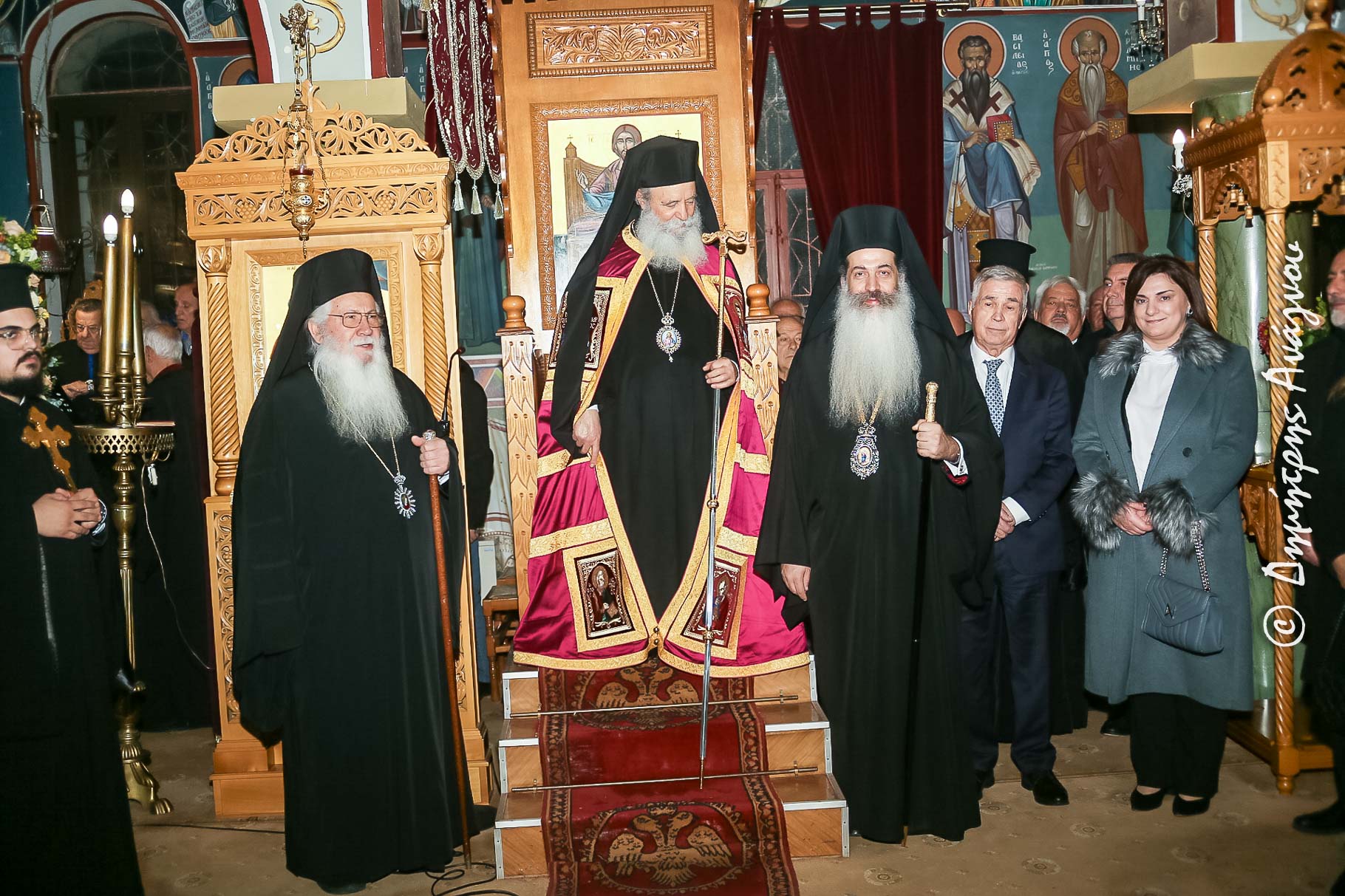 Στον Τρισαρχιερατικό Πανηγυρικό Εσπερινό χοροστάτησε ο Ύδρας κ. Εφραίμ, ο οποίος κήρυξε τον Θείο Λόγο αναφερόμενος και ερμηνεύοντας την προσευχητική αίτηση της Εκκλησίας «υπέρ των μετά πίστεως, ευλαβείας και φόβου Θεού εισιόντων» στον οίκο του Θεού, τιμώντας τις μνήμες των Αγίων, μεταξύ των οποίων, του Οσίου Ευθυμίου του Μεγάλου. Επίσης, ο κ. Εφραίμ σε μία συγκλονιστική αυτοβιογραφική του αναφορά εξέφρασε την ευγνωμοσύνη του στον Θεό, που του χάρισε, μέσα από την εκκλησιαστική εκπαίδευση, τόσο το «ζην» όσο και το «κατά Θεόν ζην», που είναι το πραγματικό «ευ ζην».