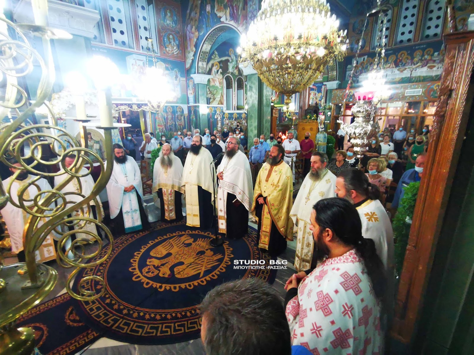 Την παραμονή της εορτής Κυριακή 30 Αυγούστου 2020 τελέστηκε πανηγυρικός εσπερινός Ιερουργούντος του Αρχιμανδρίτη Χρυσοστόμου Παπουλέση, ο οποίος κήρυξε και τον θείο λόγο. Ο σημερινός ναός της Παναγίας θεμελιώθηκε στις 21 Νοεμβρίου 1949 και περατώθηκε το 1956 με την δωρεά των κατοίκων της περιοχής, όταν ήταν ιερέας ο π. Γ. Κεραμιδάς Ο ναός ανακαινίσθηκε στις 5 Μαΐου 1966 από τον αείμνηστο Μητροπολίτη Χρυσόστομο Β’. Ο εφημέριος του ναού π. Ιωάννης Γκιώνης ευχαρίστησε τους Ιερείς καθώς και του πιστούς που προσήλθαν για να τιμήσουν την Παναγία Θεοτόκο.