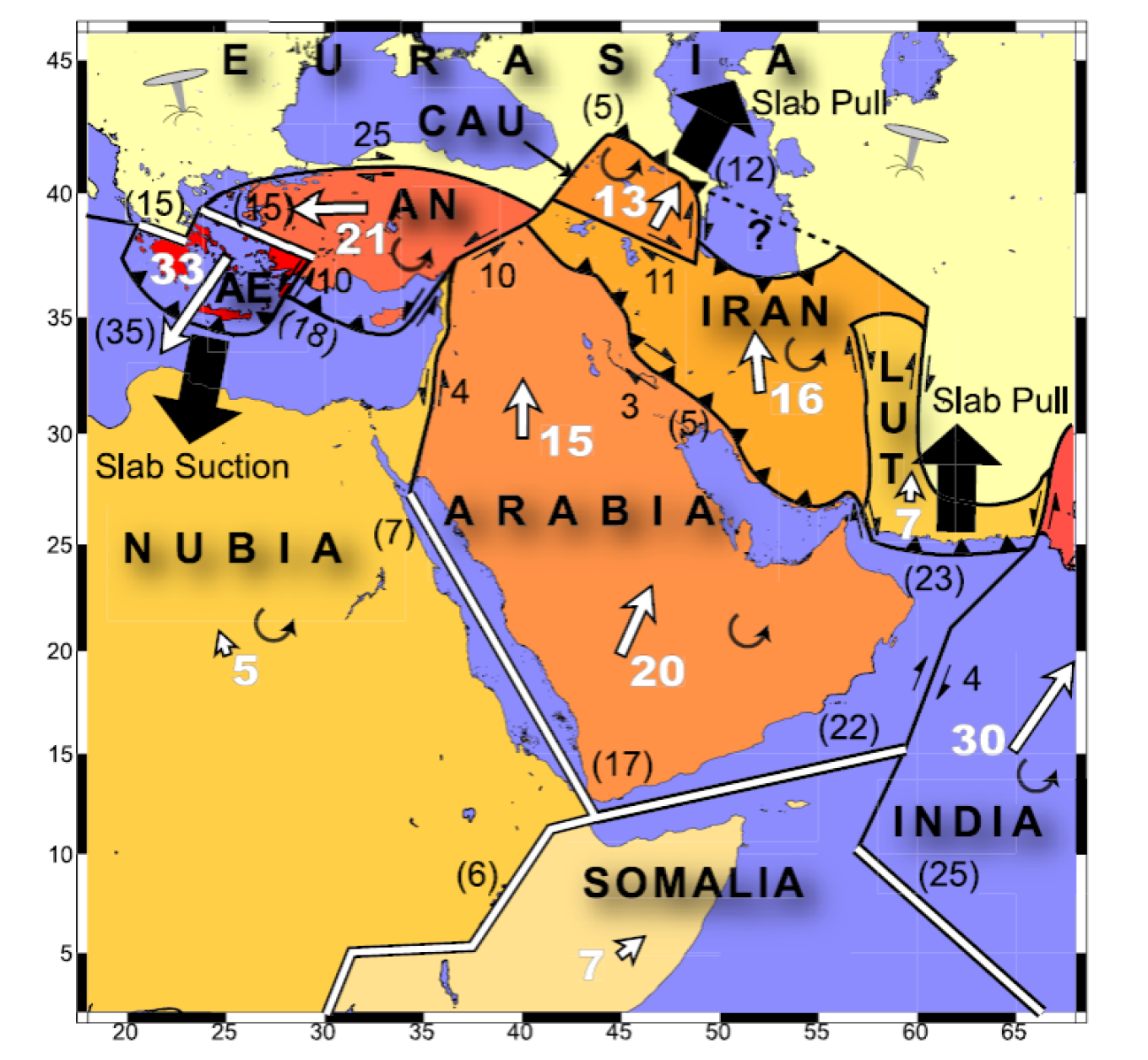 Νεότερη μελέτη από Briole, Ganas, Elias, Dimitrov, (2021, Geophysical Journal International) βασισμένη σε επιλύσεις 329 σταθμών GNSS επιβεβαίωσε την αυξανόμενη ταχύτητα των πλακών από Δυσμάς (Ανατολία- Μικρά Ασία) προς Ανατολάς (κεντρική και νότια Ελλάδα) θεωρώντας την κεντρική-βόρεια Ευρώπη ως σταθερή, οπότε ναι μεν η κίνηση της Ανατολίας είναι προς δυσμάς όμως η κίνηση της πλάκας του Αιγαίου γίνεται προς νοτιοδυτικά με μεγαλύτερη ταχύτητα, δηλ. η σχετική μέση απόσταση αυξάνει σταθερά κατά 1,5 (ενάμιση) εκατοστά ετησίως».