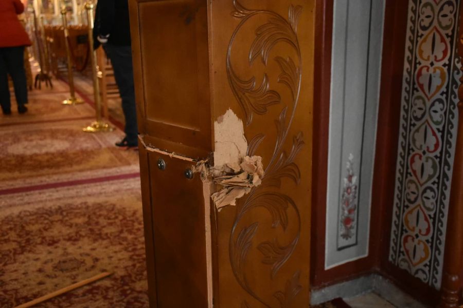 Συγκεκριμένα, οι άγνωστοι έκλεψαν σημαντικό χρηματικό ποσό από το παγκάρι, δισκοπότηρα. Φεύγοντας μάλιστα, πέταξαν και την ελληνική σημαία.