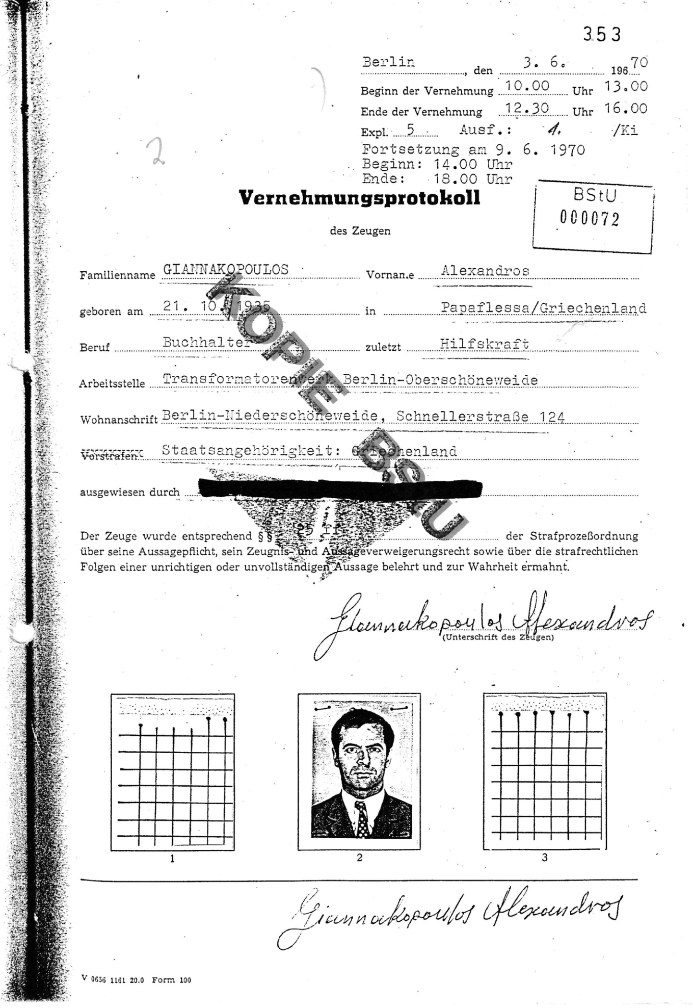 Εγγραφα από τον φάκελό του στη Στάζι, ο οποίος ήταν 85 τόμους