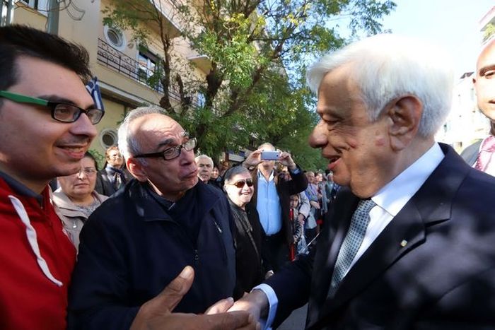 Με Θεσσαλονικείς που είχαν συγκεντρωθεί έξω από τον Ιερό Ναό του Αγίου Δημητρίου συνομίλησε ο Πρόεδρος της Δημοκρατίας Προκόπης Παυλόπουλος, αμέσως μετά το τέλος της επίσημης δοξολογίας.