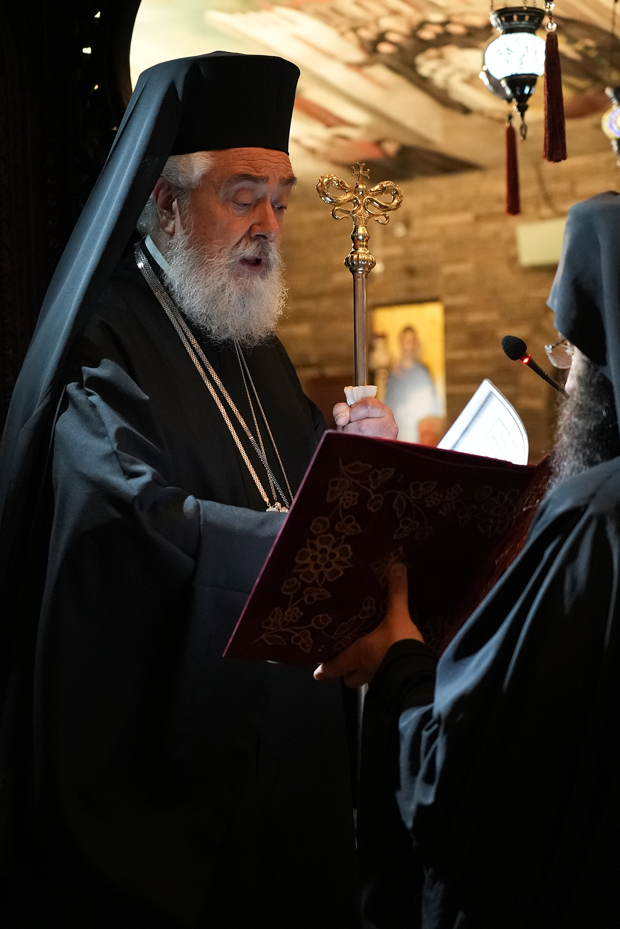 Η Τρίτη ευλογία ακολούθησε στο τέλος της Αρχιερατικής Θείας Λειτουργίας, όπου ο σεπτός Ποιμενάρχης μας απένειμε το οφφίκιο του Αρχιμανδρίτη στον μέχρι πρότινος ιερομόναχο του Ησυχαστηρίου μας, π. Θεόκτιστο Παλαιοδήμο.