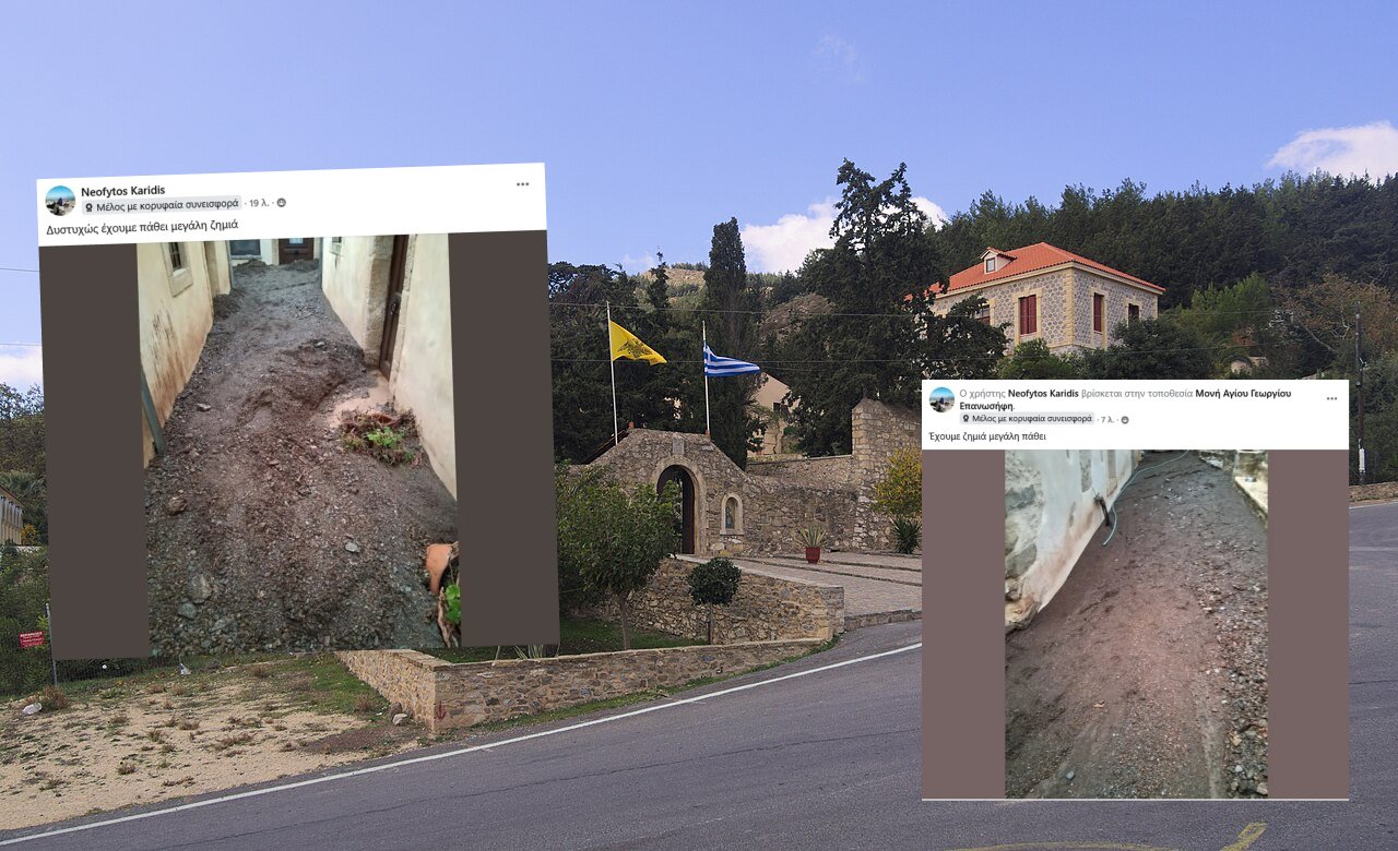 ΚΡΗΤΗ: Καταστροφές στον αύλειο χώρο – λάσπες και φερτά υλικά κατέβηκαν με ορμή – Ο Άγιος Γεώργιος Επανωσήφη βρίσκεται σήμερα στο επίκεντρο μιας εξαιρετικά δύσκολης κατάστασης, καθώς η σφοδρή κακοκαιρία “Byron” προκάλεσε εκτεταμένες ζημιές, με λάσπη και νερά που κατέβηκαν από τους γύρω λόφους και σκέπασαν τον προαύλιο χώρο.
