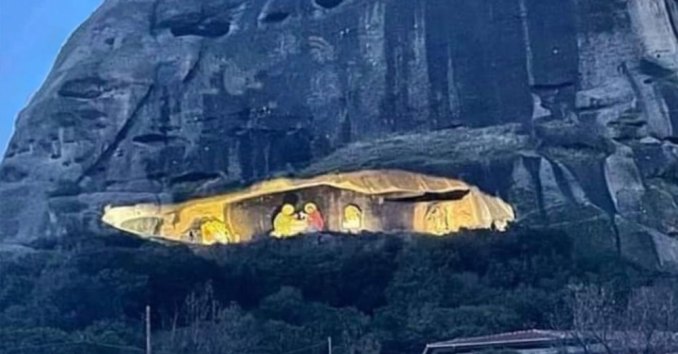 ΜΕΤΕΩΡΑ: Ένας βράχος που μοιάζει με… μάτι στα επιβλητικά Μετέωρα, φιλοξενεί και φέτος μια χριστουγεννιάτικη φάτνη, φωτισμένη κατάλληλα ώστε να φαίνεται και τη νύχτα