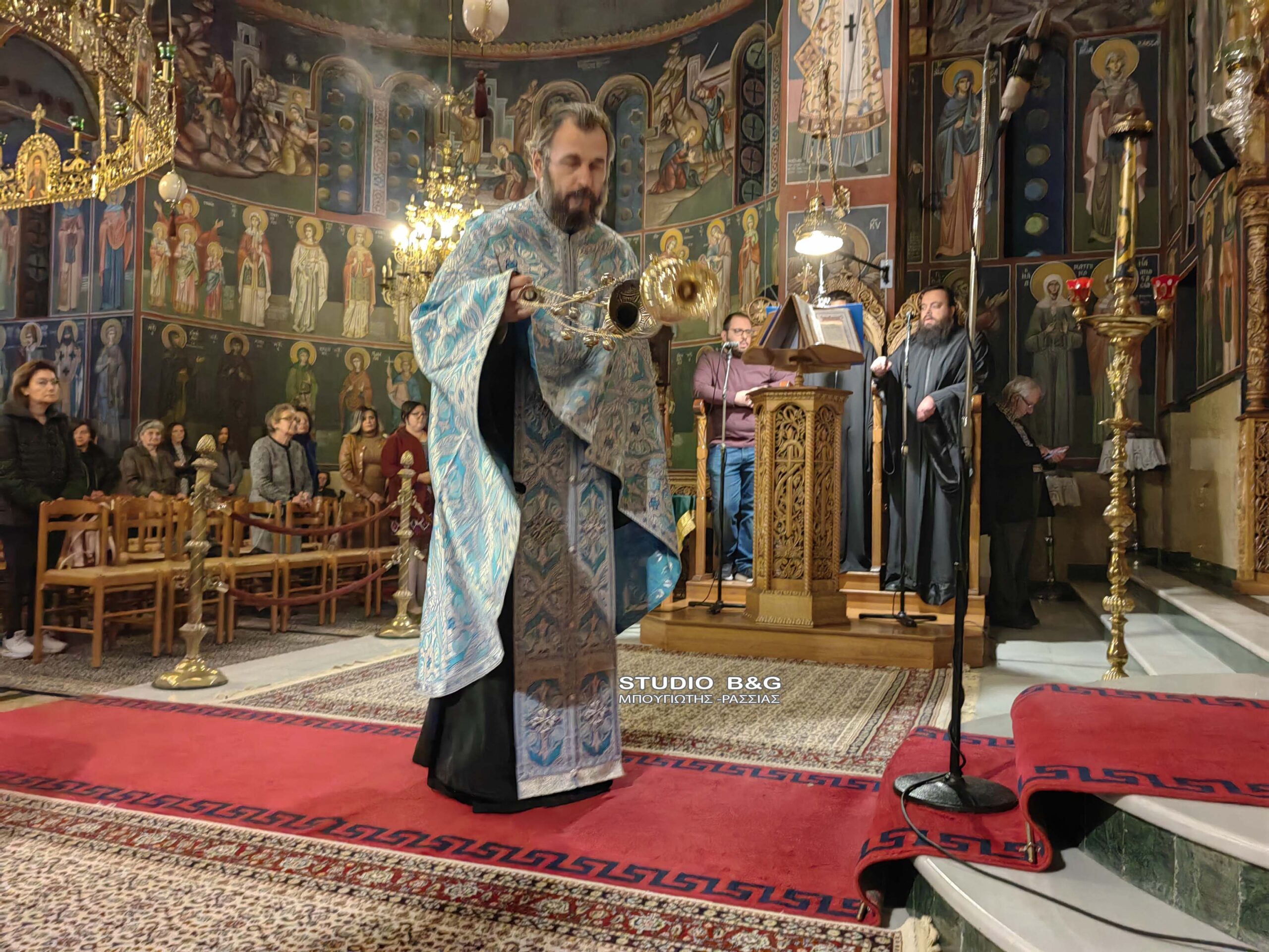 Τον πανηγυρικό εσπερινό τέλεσε ο πρωτοπρεσβύτερος π. Γεώργιος Μητροσύλης παρουσία κι άλλων ιερέων από την ευρύτερη περιοχή του Ναυπλίου.