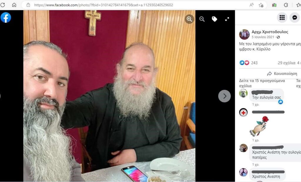 Μία από τις πολλές φωτογραφίες του που φιλοξενούσε στο προφίλ του στο Facebook (πριν το διαγράψει) ο Αρχιμανδρίτης Χριστόδουλος Βασιλάρης