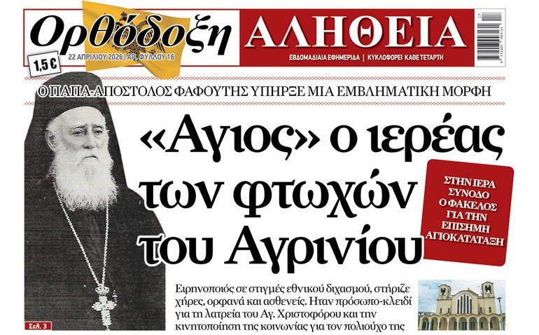 Στην Ορθόδοξη αλήθεια που κυκλοφορεί –Σε μια εποχή όπου η πίστη δοκιμάζεται και οι κοινωνικές ανάγκες πληθαίνουν, η «Ορθόδοξη Αλήθεια» συνεχίζει να αναδεικνύει πρόσωπα, γεγονότα και μαρτυρίες που φωτίζουν τον δρόμο της ελπίδας και της προσφοράς.