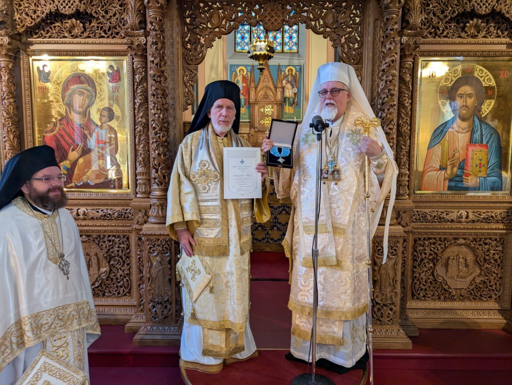 Ακολούθως, ο Σεβ. Αρχιεπίσκοπος κ. Ηλίας ευχαρίστησε τον Σεβ. Μητροπολίτη κ. Κλεόπα για την αβραμιαία φιλοξενία του και τον περιεκόσμησε με τον σταυρό του Τάγματος της Ιεράς Αρχιεπισκοπής Φινλανδίας, καθώς και το ανάλογο πιττάκιο.
