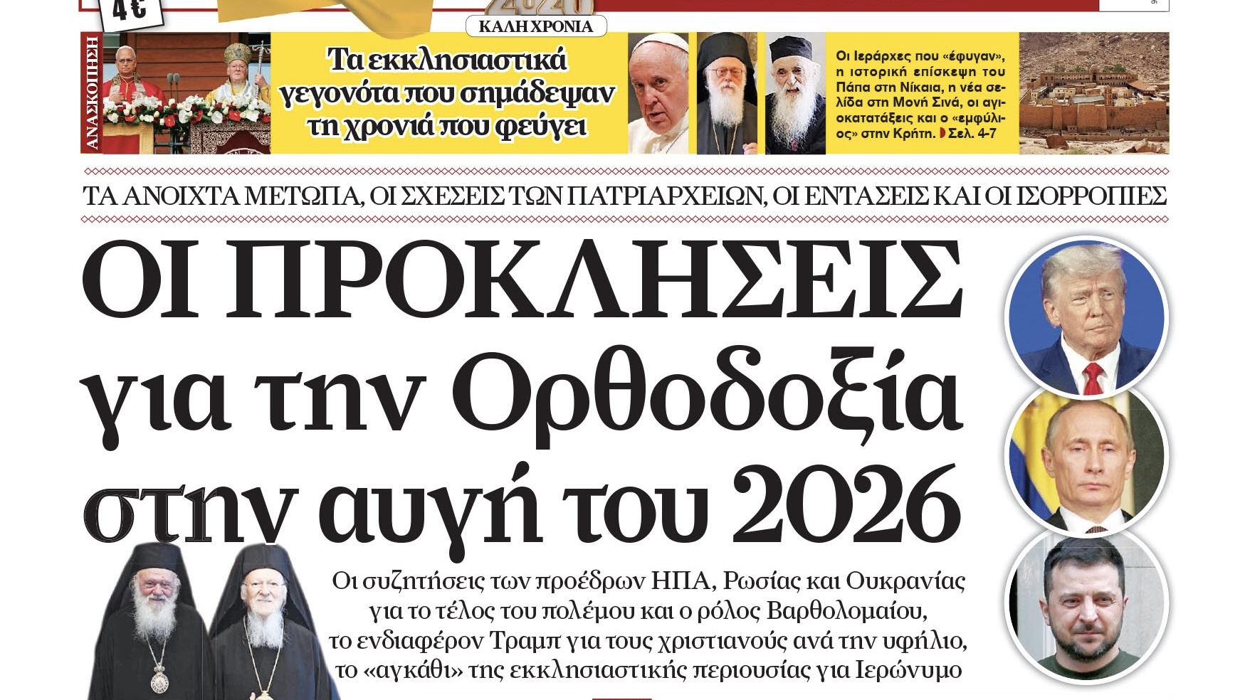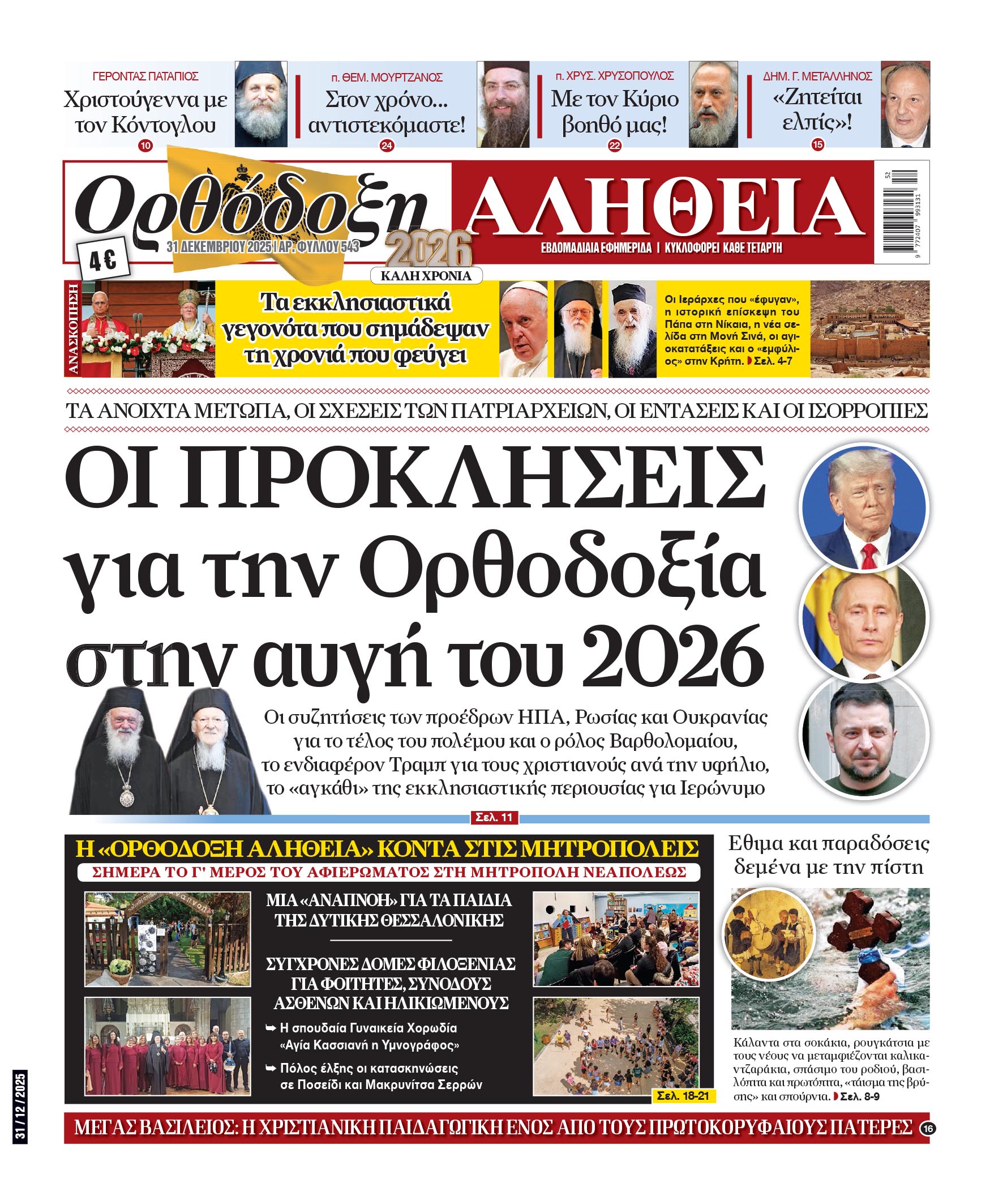 Αυτή την εβδομάδα η Ορθόδοξη Αλήθεια κυκλοφορεί την παραμονή της Πρωτοχρονιάς και θέτει στο επίκεντρο ένα εκτενές και πολυεπίπεδο αφιέρωμα για τις προκλήσεις που καλείται να αντιμετωπίσει η Ορθοδοξία με την είσοδο στο 2026.