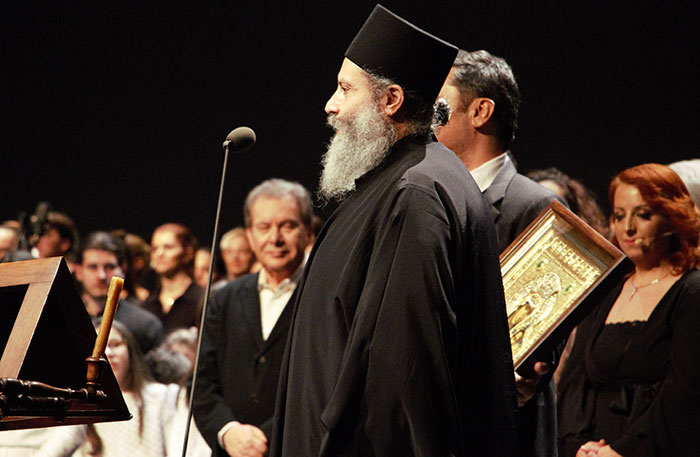 Την έναρξη της εκδήλωσης χαιρέτησαν ο Σεβασμιώτατος Μητροπολίτης Δωδώνης κ.Χρυσόστομος, ο Εκπρόσωπος του Καθηγουμένου της Ι.Μ.Μ. Βατοπαιδίου Γέροντος Έφραιμ Ιερομοναχος π.Ευδόκιμος Βατοπαιδινός , ο Διευθυντής του Ινστιτούτου Άγιος Μάξιμος ο Γραικός & Διαδικτυακού Περιοδικού ΠΕΜΠΤΟΥΣΙΑ κ.Νικόλαος Γκουράρος ,ο Διευθύνων Σύμβουλος της Μ.Κ.Ο «ΑΠΟΣΤΟΛΗ» της Ιεράς Αρχιεπισκοπής Αθηνών κ.Κωστής Δήμτσας και ο εκπρόσωπος του Αρχιεπισκόπου Αθηνών και πάσης Ελλάδος κ.Ιερωνύμου .