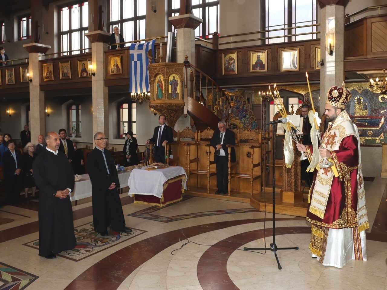 Την Ιερά Αρχιεπισκοπή εκπροσώπησε ο Θεοφιλέστατος Επίσκοπος Μελιτηνής κ. Μάξιμος, ο οποίος ομίλησε καταλλήλως στο εκκλησίασμα. Ακολούθησε χαιρετισμός του Προέδρου της Εθνικής Κυπριακής Ομοσπονδίας Ηνωμένου Βασιλείου, κ. Χρήστου Καραολή, και ο πανηγυρικός της ημέρας, τον οποίο εκφώνησε ο Ύπατος Αρμοστής της Κυπριακής Δημοκρατίας στο Ηνωμένο Βασίλειο κ. Ανδρέας Κακούρης.