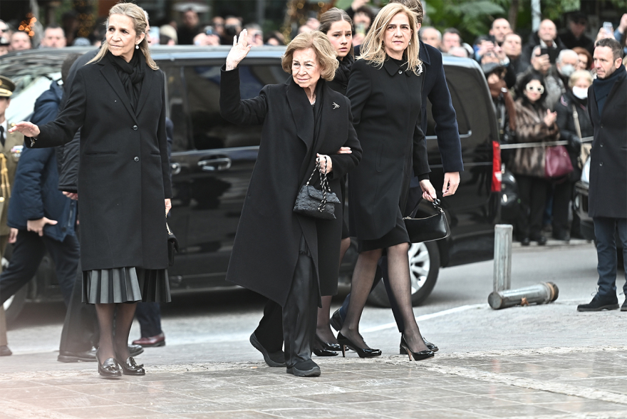 Στη Μητρόπολη Αθηνών βρέθηκε η τέως βασίλισσα Άννα Μαρία, έχοντας στο πλευρό της πρόσωπα με ισχυρό κοινωνικό και ιστορικό αποτύπωμα, ενώ το «παρών» έδωσαν η βασίλισσα Σοφία της Ισπανίας, καθώς και μέλη της οικογένειας Ντε Γκρες. Ιδιαίτερη αίσθηση προκάλεσε η άφιξη του βασιλικού ζεύγους της Ισπανίας, του βασιλιά Φελίπε ΣΤ΄ και της βασίλισσας Λετίθια, μαζί με τις κόρες τους, πριγκίπισσα Λεονόρ και ινφάντα Σοφία, οι οποίοι χαιρέτησαν τους συγκεντρωμένους, εκφράζοντας τη συμπαράστασή τους.
