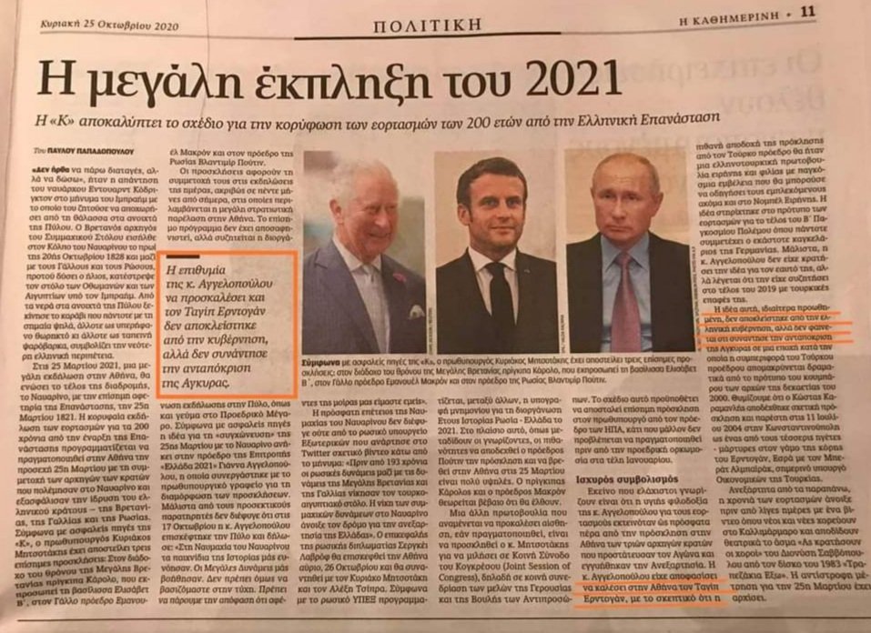 ”Η κ. Αγγελοπούλου είχε αποφασίσει να καλέσει στην Αθήνα τον Ρ. Τ. Ερντογάν, με το σκεπτικό ότι η πιθανή αποδοχή της πρόσκλησης από τον Τούρκο πρόεδρο θα ήταν μία ελληνοτουρκική πρωτοβουλία ειρήνης και φιλίας!