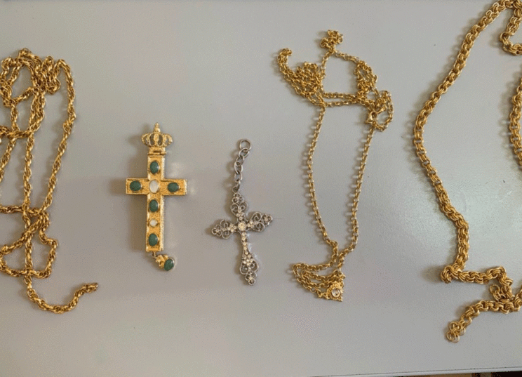 Στην συνέχεια ερεύνησε τον χώρο του ναού, αφαίρεσε συσκευή που συνδέεται με το καταγραφικό μηχάνημα εσωτερικής παρακολούθησης, παραβίασε με κατσαβίδι το παγκάρι και αφαίρεσε το χρηματικό ποσό των είκοσι ευρώ περίπου σε κέρματα και από ένα ντουλάπι αφαίρεσε σταυρούς και αλυσίδες.