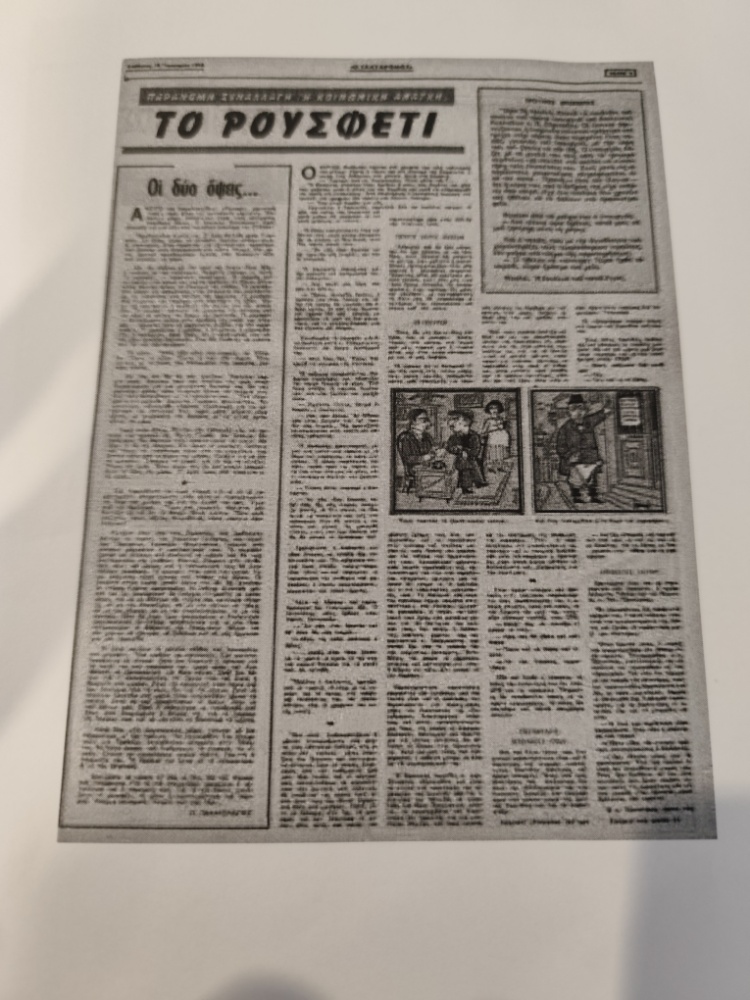 Οι εφημερίδες της εποχής, όπως φαίνεται σε δημοσίευμα του 1958 με τίτλο «Το ρουσφέτι», προσπαθούσαν να ερμηνεύσουν το φαινόμενο. Αναρωτιούνται αν πρόκειται για «παράνομη συναλλαγή» ή «κοινωνική ανάγκη».