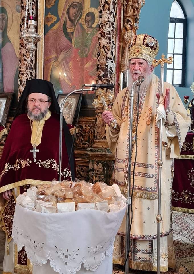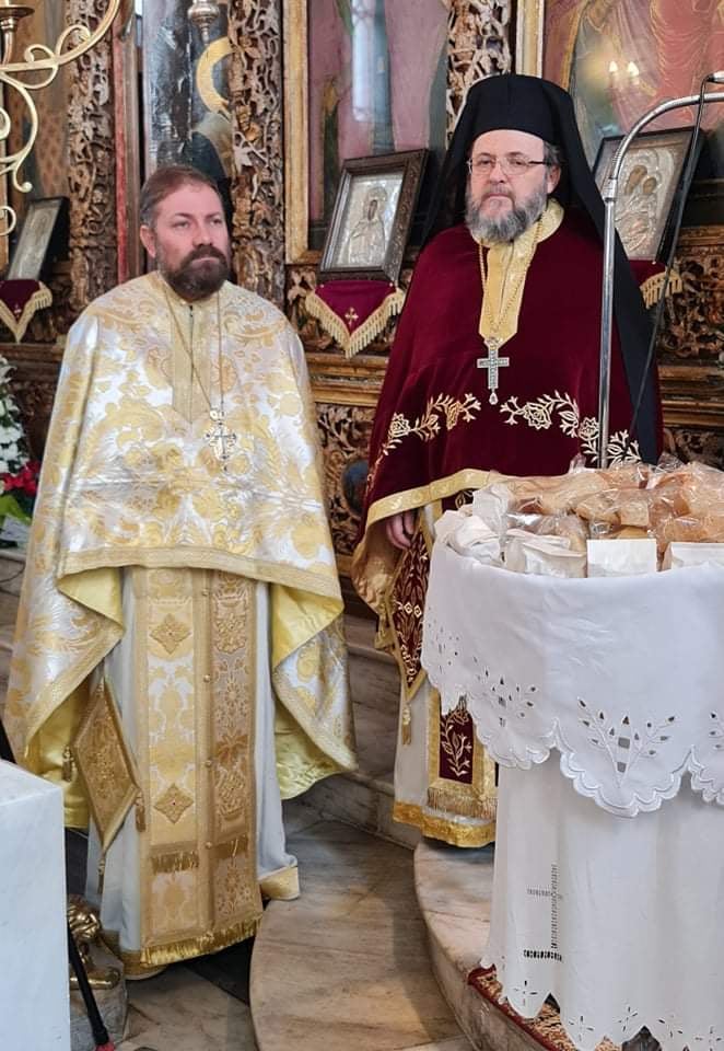 Ανήμερα της εορτής κατά την πανηγυρική Αρχιερατική Θεία Λειτουργία προεξήρχε ο Σεβασμιώτατος Μητροπολίτης μας κ.κ. Γερμανός ευλογών του άρτους, συμπαραστατούμενος από τον Πανοσιολογιότατο Αρχιμανδρίτη π. Δαμασκηνό Πετράκο Ιεροκήρυκα της Ιεράς Μητροπόλεώς μας, ο οποίος κήρυξε τον θείο λόγον με θεολογική ενέργεια και γλαφυρότητα όπως πάντα, ενώ στην ιερουργία συμμετείχαν και οι Αιδ. π. Χαράλαμπος Αθανασόπουλος, π. Παντελεήμων Παπαηλιού και π. Γεώργιος Αναγνωστόπουλος. Αμφότερες οι Ιερές ακολουθίες μεταδόθηκαν σε απευθείας σύνδεση από τον Ραδιοφωνικό Σταθμό της Ιεράς μας Μητροπόλεως, καθώς επίσης και από τους Τηλεοπτικούς Σταθμούς IONIAN CHANNEL και OΡT.