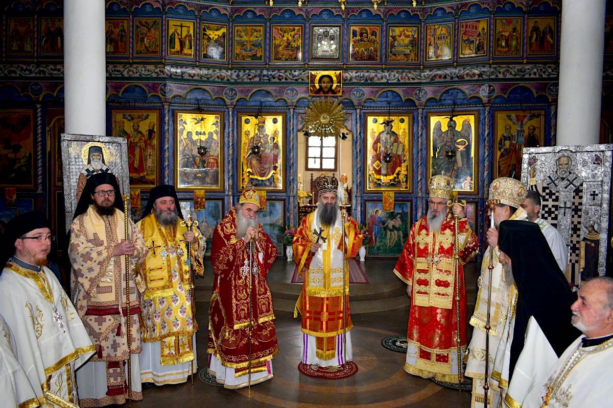 Την κυριόνυμη ημέρα της διπλής εορτής, τελέστηκε πολυαρχιερατικό συλλείτουργο. Χοροστάτησε ο Σεβασμιώτατος Μητροπολίτης Ζάγκρεμπ& Λιουμπλιάνας κ. Πορφύριος, συμπαραστατούμενος από τον σεβ/το Επίσκοπο Σουμαδίας κ.Ιωάννη, τον σεβ/το Επίσκοπο Αχλαδοχωρίου κ.Δαυίδ, τον σεβ/το Μπρεγκαλνίτσας & τοποτηρητή Βιτολίων και Πελαγονίας κ.Μάρκο (της Αρχ/πής Αχρίδος), τον θεοφιλέστατο Επίσκοπο των Στόβων & τοποτηρητή Στρώμνιτσας κ.Δαυίδ και φυσικά τον εορτάζοντα οικοδεσπότη σεβ/το Επίσκοπο Βρανίων κ.Παχώμιο. Έλαβαν μέρος ρασοφόροι τής τε Σερβίας και της Αρχιεπισκοπής Αχρίδος. Έψαλλαν μοναχές της Σέρβικης Ι.Μονής Αγ.Παντελεήμονα.