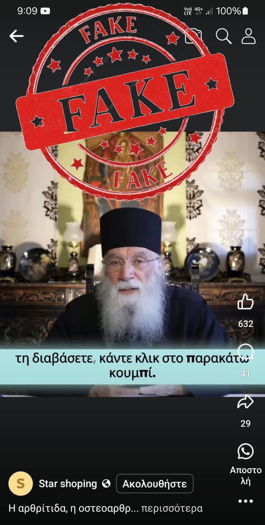 Κυκλοφορούν βίντεο που έχουν δημιουργηθεί με τη χρήση Τεχνητής Νοημοσύνης (Deepfake), στα οποία εμφανίζομαι -δήθεν- να παρουσιάζω και να προωθώ ένα συγκεκριμένο φυσικό σκεύασμα για τα αρθριτικά. Θέλω να είμαι ξεκάθαρος: