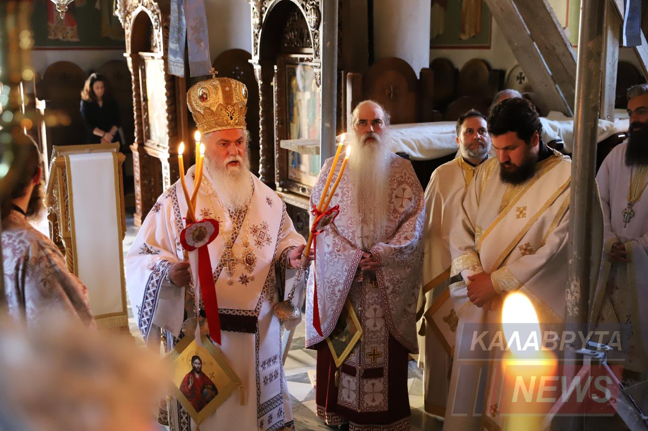 Ο Σεβασμιώτατος Μητροπολίτης Καλαβρύτων κ’ Αιγιαλείας κ.κ.Ιερώνυμος, αλλάζοντας το πρόγραμμά του αφού ήταν από χθες να ταξιδέψει στην Κωνσταντινούπολη, αποδέχθηκε το κάλεσμα του καθηγουμένου της Ιεράς και ιστορικής Μονής της Αγίας Λαύρας γέροντος Ευσεβίου και της μοναστικής κοινότητας και εόρτασε τα ονομαστήριά του στην Ιερά Μονή των Καλαβρύτων και χοροστάτησε στην πανηγυρική Θεία Λειτουργία, που τελέστηκε στο Καθολικό της Μονής, συλλειτουργούντων των ιερέων της Ιεράς Μητροπόλεως.