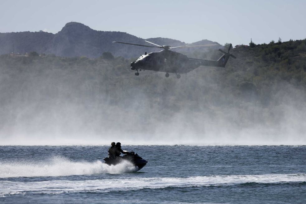 Από το Διοικητήριο του ΚΕΕΔ ο Πρωθυπουργός παρακολούθησε στρατιωτική επίδειξη με την ανάπτυξη ελικοπτέρων, εξωλέμβιων Zodiac, jet ski και αλεξιπτωτιστών με σκοπό την κατάληψη ακτής και τη διάσωση ομήρου.