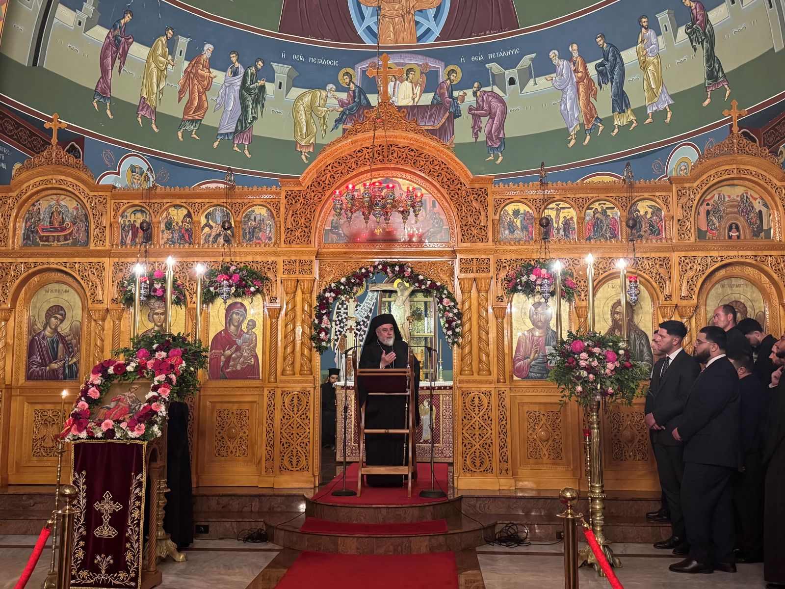 Κλείνοντας, ο Επίσκοπος διαβίβασε στον Ιερατικώς Προϊστάμενο, Πρωτοπρεσβύτερο του Οικουμενικού Θρόνου π. Παναγιώτη Μαυρομμάτη, στους αδελφούς ιερείς, στους ιεροψάλτες, στο Εκκλησιαστικό Συμβούλιο, στη Φιλόπτωχο Αδελφότητα, στη Νεολαία και στο πολυπληθές εκκλησίασμα την αγάπη και τις ευχές του Αρχιεπισκόπου κ. Μακαρίου.