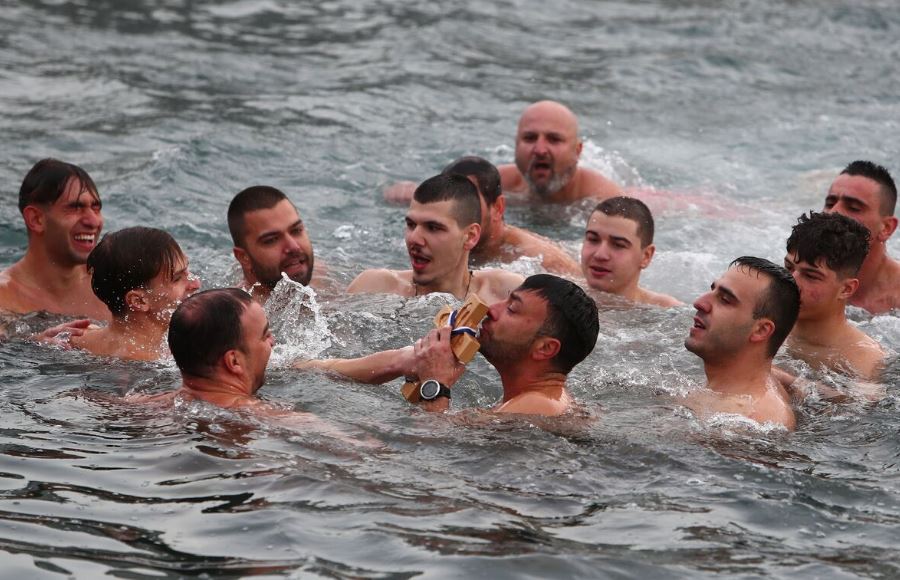 Στα κρύα νερά του Θερμαϊκού βούτηξαν 35 πιστοί, ανάμεσα τους πέντε ανήλικοι και δύο γυναίκες. Τον Τίμιο Σταυρό έπιασε και ανέσυρε από τα νερά του Θερμαϊκού ο αθλητής υδατοσφαίρισης και φοιτητής στο μαθηματικό του ΑΠΘ Στέργιος Παγωνίδης.
